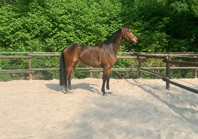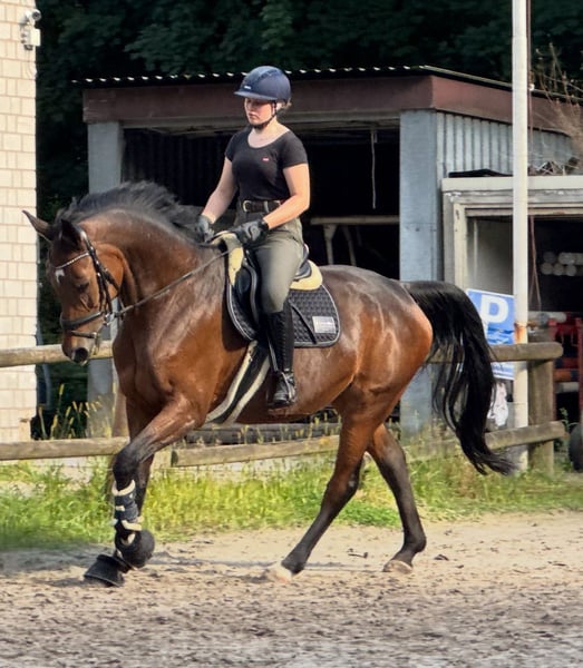 We are looking for a new home for our beautiful Oldenburg mare. Due to her pedigree, she is certainly also interesting for breeding. She had a very good filly at the age of 4, from which a great offspring has already come. She is absolutely sweet and very uncomplicated to handle. She enjoys varied work and goes out into the terrain relaxed. In dressage, she is placed at A-level and trained up to L-level. She is familiar with jumps up to 80 cm. The mare is fully vaccinated. Unfortunately, she has a lymphatic drainage issue in one of her hind legs, which has never affected her. There is nothing to see when she is in motion. This has also been checked by a veterinarian. She is fully rideable and capable of work. Due to this finding, she is priced well below her value! Home before price!
