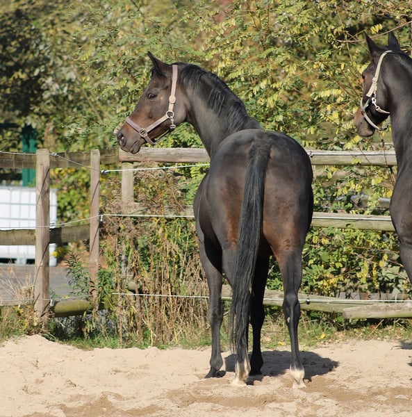 Jument Oldenburger foncée née en 2013, par Dr. Jackson / Diamond Hit / Campari / Akzent / Kronprinz xx, avec trois générations de juments d'élite dans le pedigree, issue d'une des lignées de juments les plus renommées de l'Oldenbourg (lignée Waldhexe). La mère est la sœur utérine du mâle de keur et de chevaux de Grand Prix internationaux, ainsi que d’autres juments d’élite et de chevaux de dressage S. La grand-mère (lauréate en dressage chez les chevaux de sport en Oldenbourg et finaliste du Bundeschampionat) est la mère de mâles, de chevaux de Grand Prix, de nombreux chevaux performants en S, de juments d’élite, etc. La arrière-grand-mère, triple mère de mâle, a donné naissance à de nombreux chevaux de dressage performants en S et à des chevaux de vente de premier plan en Oldenbourg. La jument elle-même et ses frères et sœurs ont tous été primés en foal, et plusieurs de ses frères et sœurs sont également des juments d’élite, certaines ayant été invitées à la sélection d’élite à Rastede, ainsi que des chevaux de sport performants. Le père, Dr. Jackson, figurait pendant de nombreuses années parmi les 1 % des meilleurs en estimation de valeur génétique, et s’est forgé une réputation mondiale en tant que reproducteur de dressage. Diamond Hit, également longtemps dans le top 1 % de l’évaluation génétique, a connu une carrière réussie jusqu’à la qualification pour les Jeux Olympiques. La jument a été légèrement monté, mais n’a pas été poursuivie dans sa carrière sportive car elle est ensuite entrée en reproduction. Elle est en bonne santé, se laisse brosser sans problème, ne montre que des signes de chaleurs par la queue, et est douce et facile à manipuler, aussi bien avec les autres chevaux qu’en société. Jusqu’à présent, elle a eu quatre magnifiques foals, tous portés immédiatement, et elle est une mère très aimante et facile à gérer. Actuellement, en raison de circonstances personnelles, elle n’est pas pleine, mais peut être saillie immédiatement avec le stud-book de votre choix. www.quadriga-pferdehaltung.de
