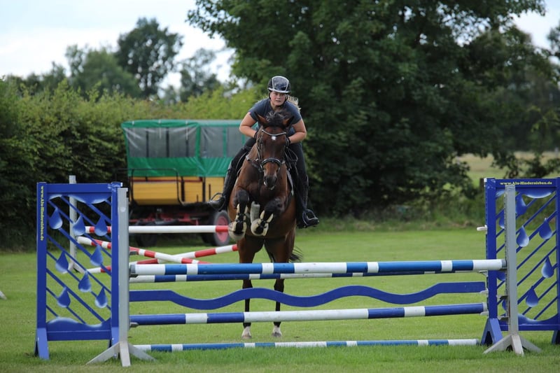 Schweren Herzens verkaufen wir unsere 13-jährige Oldenburger Stute „Coco“ hat ein Stockmaß von 1,64 cm, eine echte Allrounderin und für jeden Spaß zu haben. Wir wünschen uns für sie einen absoluten Bestplatz wo sie als vollwertiges Familienmitglied geschätzt und behandelt wird. Wir wünschen uns für sie ein Zuhause, in dem sie einem ambitionierten Freizeitreiter oder als Lehrmeisterin Freude bereiten kann – mit gelegentlichen Turnierambitionen. Der Springsport ist Cocos Leidenschaft, wurde in den letzten Jahren aufgrund mangelnden Interesses jedoch nur auf E-A-Niveau verfolgt. Aufgrund ihrer Freude am Springen und ihres Charakters können wir sie uns hier als tolle Lehrmeisterin vorstellen. Dressurmäßig konnte sich Coco noch in diesem Jahr in Dressurprüfungen der Klasse A* platzieren mit tollen Noten bis 7,4. Spielerisch wurden in das Training immer mal wieder diverse Seitengänge und fliegende Wechsel eingebaut. Auch in einer geführten Gelassenheitsprüfung konnte sich Coco in diesem Jahr an erster Stelle platzieren. Sie freut sich über Ausritte (hier allerdings nur zu zweit, alleine arbeiten wir dran), Bodenarbeit, ein paar Geländesprünge, Wasser oder Longen-Programm. Seit wir sie haben, tritt Coco im Schritt am aufgenommenen Zügel kurz-lang, was sie jedoch nicht negativ beeinträchtigt und mit guter reiterlicher Unterstützung gut „rausgeritten“ werden kann. Auch in den Dressurprotokollen wurde der Schritt nie als taktunrein bewertet. Außerdem hat Coco leichte Arthrose in der HWS, welches wir im vergangenen Jahr haben spritzen lassen und welches sie nicht weiter einschränkt. Wir wünschen uns für Coco einen liebevollen aber erfahrenen und konsequenten Reiter. Sie ist im Umgang ein absoluter Schatz und hat sich insbesondere dieses Jahr auf Turnier von ihrer besten und souveränen Seite gezeigt. Im Gelände kann es allerdings vorkommen, dass man sich durchsetzen muss, wenn Madame den Heimweg antreten möchte. Coco ist regelmäßig entwurmt, turniergemäß geimpft (+West-Nil), hat 2 Eisen und ist verladefromm. Aktuell steht sie nachts in der Box und tagsüber auf der Stuten-Wiese. Vorher stand sie im Sommer auf einer 24 Stunden Wiese in einer gemischten Herde und kam dort auch super zurecht. Sie ist sehr verträglich. Alles in allem ist Coco eine tolle Stute, die sich in der Vergangenheit unter starken Reitern toll gezeigt hat aber auch schwächeren Reitern mit ihrer Ehrlichkeit vieles beibringen konnte. Können sie uns aber durch ihre Abstimmung auch als Zuchtstute oder durch ihre verträgliche Art als Beistellpferd vorstellen. Wir verkaufen sie schweren Herzens, da sich mit Anfang 20 die Lebensumstände geändert haben. Absolut Platz vor Preis!