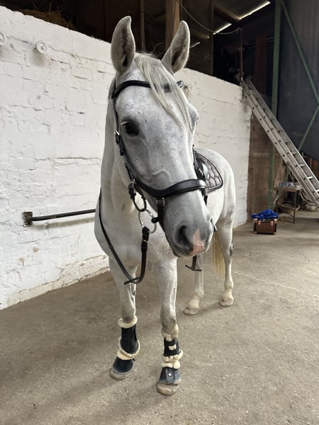 Zum Verkauf steht eine hübsche 12-jährige Oldenburger Schimmelstute von Cordess (Clinton x Heartbreaker) aus Contendro I Mutter. Cordessa ist eine 1,64 m große Sportstute, die einem im Umgang und der täglichen Arbeit viel Freude bereitet. Ihre Stärke liegt im Springen. Hier möchte sie immer auf die andere Seite und verzeiht auch den ein oder anderen Reiterfehler. Dabei ist sie einfach zu reiten, springt mit der nötigen Übersicht und zeigt im Training genügend Vermögen für die Klasse M (mehr wurde nicht ausprobiert). Cordessa weißt zahlreiche A** Platzierungen vor und lief auch schon L-Springen ohne Springfehler (1 Zeitstrafpunkt) und konnte auch mit einer 16 jährigen Turniereinsteigerin ein E-Stil gewinnen. Auch in der Dressur (A-Niveau) zeigt sie sich brav und mit guter Arbeitseinstellung und geht gelassen alleine oder in der Gruppe ins Gelände. Sie ist vollständig geimpft (auch Herpes), wurde regelmäßig dem Schmied vorgestellt und von Osteopath und Zahnarzt kontrolliert. Cordessa wird aus zeitlichen Gründen verkauft und daher nur in beste Hände abzugeben, gerne mit Familienanschluss. Keine Händler!