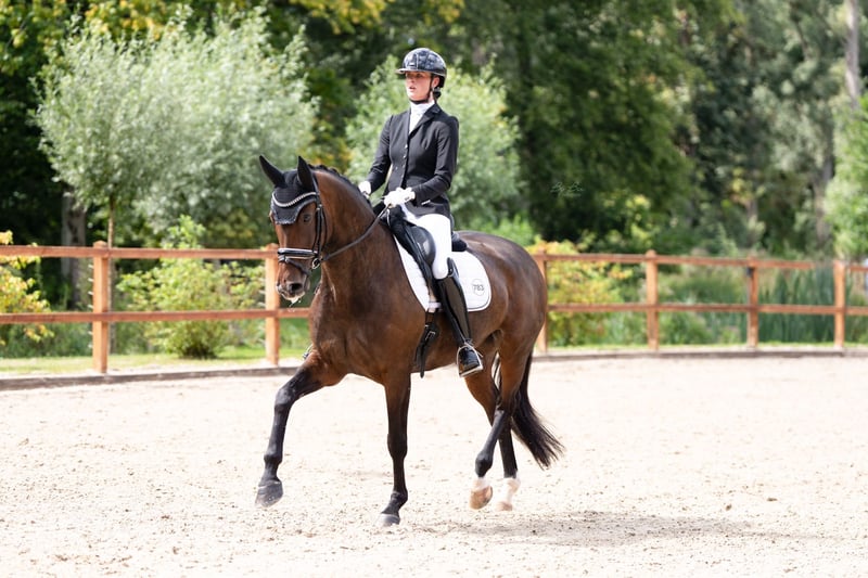 Zum Verkauf: äußerst liebenswerte, erfahrene und charakterstarke Stute mit hoher Qualität Wir bieten hier eine besonders liebe und anhängliche Stute zum Verkauf an. Ein Pferd, das durch sein angenehmes Wesen, seine Ehrlichkeit und seine vielseitigen Einsatzmöglichkeiten sowohl im Sport als auch außerhalb überzeugt. Diese Stute verfügt über umfangreiche Wettkampferfahrung. Sie ist leicht und fein zu reiten, reagiert auf sehr leichte Hilfen und ist scharf, ohne heiß oder schreckhaft zu werden. Sie vermittelt dem Reiter ein wunderbares Gefühl und bleibt stets aufmerksam. Unter dem Sattel besitzt sie eine ausgezeichnete Schrittqualität, schöne ausgedehnte Gänge und einfache Wechsel. Appuyements führt sie sehr mühelos aus. Im Training zeigt sie bereits einen korrekten und vielversprechenden Beginn von Piaffe und Passage. Zudem springt sie bereits einige Sprünge. Im Viereck gibt sie stets ihr Bestes und arbeitet mit Freude mit. Alle Übungen meistert sie mit großem Leichtigkeit. Kurz gesagt, ein sehr angenehmes Turnierpferd. Sie ist sowohl an Zügel, als auch an Kandare und Zügelzügel zu reiten. Auch außerhalb der Dressur ist sie ein äußerst angenehmes Pferd. Sie springt gern, und im Training absolvieren wir Parcours bis 1,00 m für Abwechslung. Außerdem genießt sie sichtbar Spaziergänge im Wald und am Strand, die wir wöchentlich unternehmen, sowie entspannte Spaziergänge an der Hand im Wald. Im Umgang ist sie so zuverlässig, dass selbst ein kleines Kind sicher mit ihr spazieren gehen kann. Incognito ist sehr menschenbezogen, was die Bindung zu ihr zusätzlich stärkt. Sie ist im Umgang äußerst unkompliziert: brav beim Hufschmied, beim Tierarzt und beim Transport. Ihr Charakter ist ruhig, gelassen und panikfrei. Sie freut sich immer über Streicheleinheiten und Kribbeln. Sie ist topgesund. Im August 2024 wird sie klinisch und röntgenologisch vollständig untersucht, inklusive Hals und Rücken, ohne Befunde. Incognito hat keine Haltungsfehler. Wir suchen ein liebevolles und passendes Zuhause, in dem sie alle sportlichen Chancen erhält und die nötige Aufmerksamkeit bekommt. Für weitere Informationen oder ein Kennenlernen rufen Sie uns gern telefonisch an.