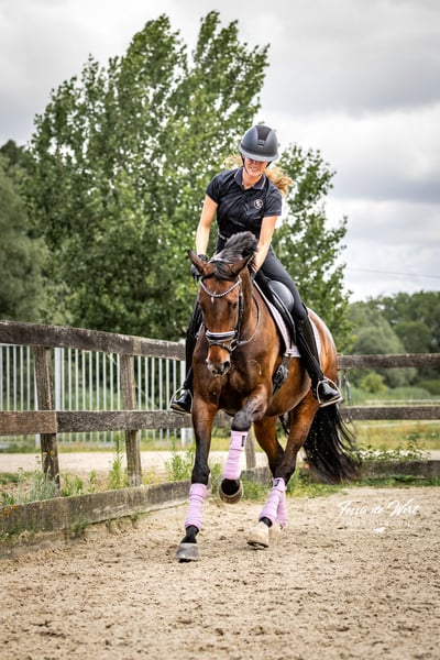 Te koop: super lieve merrie met ervaring, kwaliteit en een gouden karakter Hierbij bieden wij deze bijzonder lieve en aanhankelijke merrie te koop aan. Een paard dat opvalt door haar fijne karakter, haar eerlijkheid en haar brede inzetbaarheid – zowel in de sport als daarbuiten. Deze merrie heeft ruime wedstrijdervaring. Ze is licht en fijn te rijden, reageert op zeer lichte hulpen en is scherp zonder heet of schrikachtig te worden. Ze geeft haar ruiter een heerlijk gevoel en blijft aanbieden. Onder het zadel beschikt zij over een uitstekende stap, mooie uitgestrekte gangen en makkelijke wissels. Appuyementen doet ze erg makkelijk. In de training laat zij al een correct en veelbelovend begin van piaffe en passage zien. Ook springt ze al een paar eners (one tempis). In de ring zet ze altijd haar beste beentje voor en werkt ze met plezier mee. Alle oefeningen doet ze met veel gemak. Kortom, een heel fijn wedstrijdpaard. Ze is zowel op trens, als op stang- en trens te rijden. Ook buiten de dressuur is zij een heel fijn paard. Ze springt graag en in de training rijden we parcoursen van 1.00 m voor de afwisseling. Daarnaast geniet zij zichtbaar van bos- en strandritten, die we wekelijks maken, en van ontspannen wandelingen in het bos aan de hand. In de omgang is zij zo betrouwbaar dat zelfs een klein kind veilig met haar kan lopen. Incognito is heel erg mensgericht, wat de band met haar extra sterk maakt. Ze is zeer makkelijk in de omgang: braaf bij hoefsmid, tandarts en op transport. Haar karakter is rustig, nuchter en zonder paniek. Ze is altijd in voor knuffels en kriebels. Ze is super gezond. In augustus 2024 is zij volledig klinisch en röntgenologisch goedgekeurd, inclusief hals en rug, zonder bemerkingen. Incognito heeft geen stalgebreken. We zoeken een heel liefdevol en passend thuis waar zij alle kansen in de sport en aandacht krijgt. Neem gerust telefonisch contact op voor meer informatie of een kennismaking.