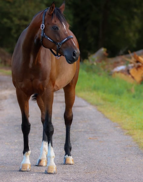 With a heavy heart, I am selling my 13-year-old brown Oldenburg mare "Goldi" because I can no longer give her the attention she deserves with my two young children. Goldstream is sired by Fürst Romancier out of Harvard x Painters Row XX, and her height is approximately 170 cm. She was born in 2013, completed her mare performance test in 2016, was registered in the Oldenburg Verband stud book, and had a foal in 2017. I purchased Goldi directly from the breeder in 2020. In the past, she was ridden for leisure with a focus on dressage work. However, due to lack of time, she has not been ridden for a year, so I am not selling her as a riding horse, but she can be trained further without issues. Currently, she is being lunged and handled from the ground four times a week. She is familiar with lunging, double longe, and walks calmly in the field. Goldi thrives best in a larger herd with plenty of movement, so I am seeking a new home for her in an open stable or as a broodmare with several mares on pasture. Goldi has a pollen allergy, for which she is regularly desensitized. She copes well with it, but the new owner should keep her on antihistamines during pollen season to maintain her good condition. Temperamentally, she is curious, eager to learn, and willing, but she quickly recognizes who she is dealing with. Therefore, a confident handler is essential. In the herd, she tends to be higher-ranking but is very content if she is not the herd leader. Of course, Goldi is regularly dewormed, vaccinated, and has had regular visits from the farrier and dentist. Goldi is located in 922**. If you would like to meet her or have further questions, please feel free to contact me.
