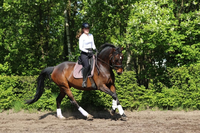 Met pijn in het hart bieden wij onze 13-jarige Oldenburg merrie te koop aan. „Coco“ heeft een stokmaat van 1,64 m, is een echte allrounder en staat open voor ieder plezier. We zoeken voor haar een liefdevolle plek waar ze als volwaardig familielid wordt gewaardeerd en verzorgd. We wensen haar een thuis waar ze een ambitieuze recreatieamazone of als leermeesteres plezier kan brengen – met af en toe concoursambities. De springsport is Coco’s passie, maar de laatste jaren is ze vanwege gebrek aan interesse alleen op E-A-niveau actief geweest. Vanwege haar plezier in springen en haar karakter kunnen wij haar hier voorstellen als een geweldige leermeesteres. Dressuurmatig heeft Coco dit jaar nog kunnen plaatsen in klasse A* dressuurproeven met mooie cijfers tot 7,4. Tijdens de training werden regelmatig diverse zijgangen en vliegende wissels ingebouwd, speels en met plezier. Ook heeft Coco dit jaar deelgenomen aan een geleid rust- en zelfbeheersingsproef, waarin ze op de eerste plaats eindigde. Ze geniet van buitenritten (alleen in tweetallen, we werken eraan dat ze ook solo kan), grondwerk, enkele hindernissen in het terrein, water en longeerwerk. Sinds wij haar hebben, loopt Coco in draf met korte en lange teugel, wat haar niet negatief beïnvloedt en met goede begeleiding van de ruiter goed te corrigeren is. Ook in de dressuurprotocollen werd de stap nooit als tactunrein beoordeeld. Daarnaast heeft Coco lichte artrose in de halswervelkolom, die vorig jaar is behandeld met injecties en haar verder niet beperkt. We zoeken voor Coco een liefdevolle, maar ervaren en consequente ruiter. Ze is een absolute schat in de omgang en heeft zich vooral dit jaar op concours van haar beste en meest zelfverzekerde kant laten zien. In het terrein kan het echter voorkomen dat ze haar eigen zin wil doordrijven, vooral als ze naar huis wil. Coco is regelmatig ontwormd, volgens wedstrijdvoorschriften gevaccineerd (+ West-Nijl), heeft 2 hoefijzers en is loadingsvriendelijk. Ze staat momenteel ’s nachts in de box en overdag op de merrieweg. Eerder heeft ze in de zomer 24 uur op een weiland in een gemengde kudde gestaan en zich daar uitstekend gered. Ze is zeer sociaal en betrouwbaar. Kortom, Coco is een fantastische merrie die zich in het verleden onder sterke ruiters uitstekend heeft laten zien, maar ook minder ervaren ruiters veel kan leren door haar eerlijkheid. We kunnen haar ook voorstellen als fokmerrie of als gezelschapspaard vanwege haar vriendelijke aard. We verkopen haar met pijn in het hart, omdat onze levensomstandigheden begin twintig veranderen. Absolute prioriteit voor prijs!