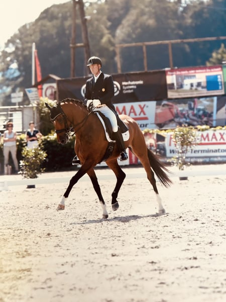 Hochmotivierte talentierte wunderschöne Stute mit bester Dressur-Abstammung und Sporterfolgen! Zahlreiche Siege und Platzierungen Kl. M und S mit Wertnoten bis über 70% ! Besonderes Talent für Piaffe und Passage! Absolut leistungsbereit , wird ohne Gerte geritten , sehr brav im täglichen Umgang und im Gelände.Preis der Qualität entsprechend! Weitere Videos und Informationen sehr gerne auf Anfrage.Wir freuen uns über Ihre Kontaktaufnahme!