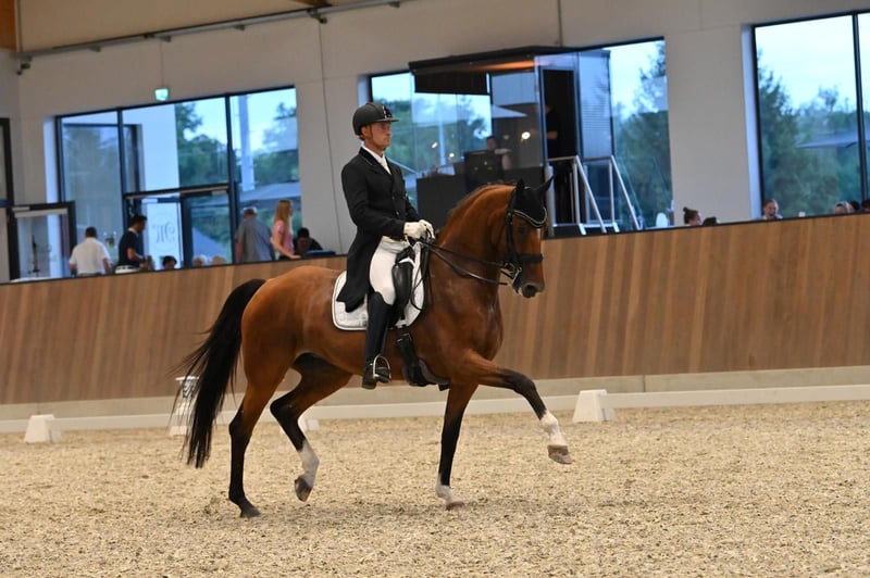 Hochmotivierte talentierte wunderschöne Stute mit bester Dressur-Abstammung und Sporterfolgen! Zahlreiche Siege und Platzierungen Kl. M und S mit Wertnoten bis über 70% ! Besonderes Talent für Piaffe und Passage. Absolut leistungsbereit , wird ohne Gerte geritten , sehr brav im täglichen Umgang und im Gelände.Preis der Qualität entsprechend! Video auf Anfrage.