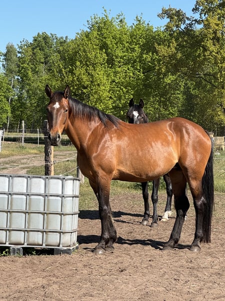 Häschen fue montada hace años y, debido a circunstancias, no ha estado en entrenamiento durante un tiempo prolongado. Hemos revisado su montabilidad y la pequeña nos sorprendió positivamente. Sin embargo, también se mostró que no parece ser adecuada para tareas más grandes. Actualmente no hay posibilidad de probarla en montura. Häschen tiene bonitos aires básicos. Es muy sensible y un poco cautelosa con las personas desconocidas. En la manada, Häschen ocupa una posición intermedia. La yegua proviene de una intervención del veterinario. La pequeña busca un nuevo hogar en un establo abierto con compañía de otros caballos. Se prioriza el espacio sobre el precio. El nuevo hogar será verificado previamente por el veterinario.