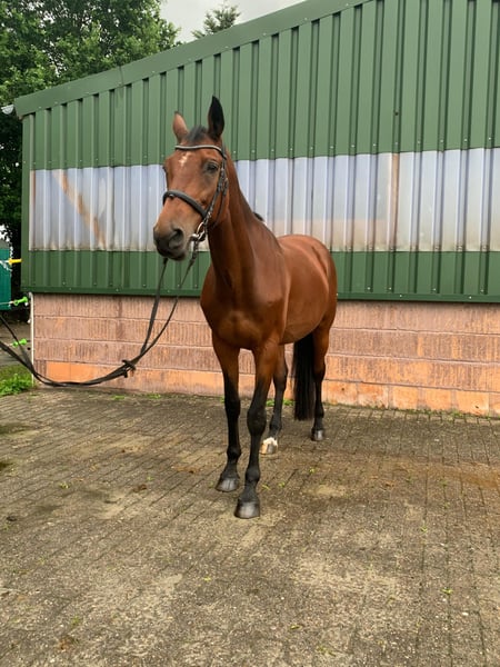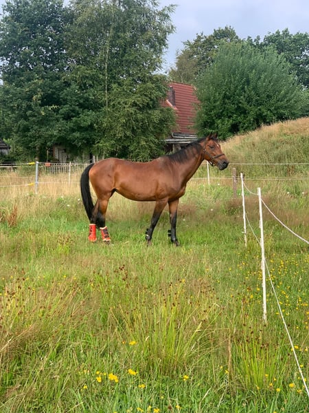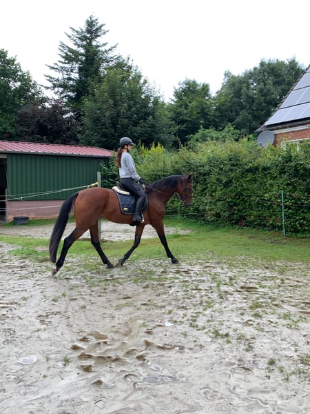 Wir suchen für Quintana, eine Oldenburger Stute (geb. 2010) ein neues Zuhause. Aktuell steht sie übergangsweise bei uns und wird täglich geritten, sie ist brav und geländesicher. Kein Steigen, kein Buckeln, kein Losrennen. Sie kennt Box, Offenstall und 24/7 Weide, respektiert Zäune und ist unkompliziert im Umgang. Vorgeschichte: – Griffelbeinbruch hinten rechts (2021) – Sehnenschaden (2022), wurde per Eigenbluttherapie behandelt, seitdem beschwerdefrei Sie ist wie gesagt seit mehreren Jahren ohne Probleme und wurde seitdem fast täglich bewegt. Röntgenbilder von 2021 vorhanden. Trense, Sattel, Halfter, Gamaschen, Putzzeug, Regendecke, Winterdecke, Fliegendecke gibt's dazu. Wir wünschen uns einen Endplatz bei jemandem der sie weiter fordert und vielleicht auch gerne mal mit ihr ins Gelände geht. Bei Fragen, egal welche, einfach melden. Ein persönliches kennenlernen ist jederzeit möglich. Viele Grüße, Nadine :)