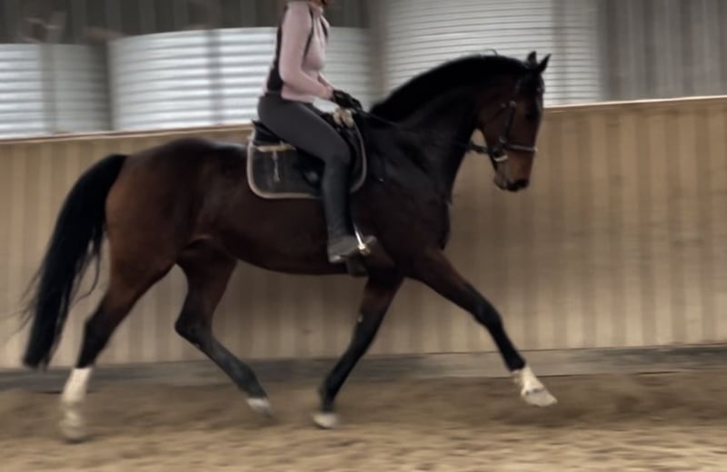 Zuchtstute aus der Linie des Rubinstein! Galaxy ist eine Tochter des Romanov, einem der wohl bedeutendsten Söhne des Oldenburger Stempelhengstes Rohdiamant. Romanov war selbst international höchst erfolgreich und siegreich in bis Grand Prix unter anderem in Aachen und Drachten. Muttervater ist der Holsteiner Hengst Classiker. Dieser wirkte als Doppelvererber und bringt über seinen Muttervater Nevado xx den nötigen Schuss Vollblut mit. Ihre Nachkommen gehen erfolgreich in M- und S-Dressur