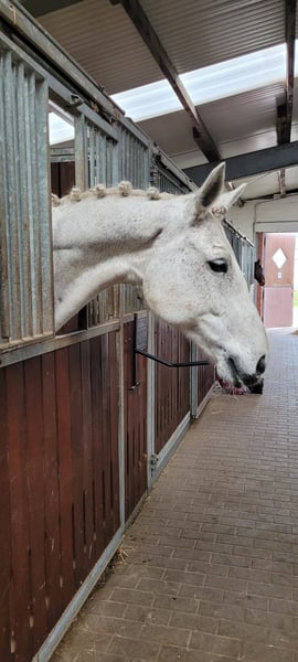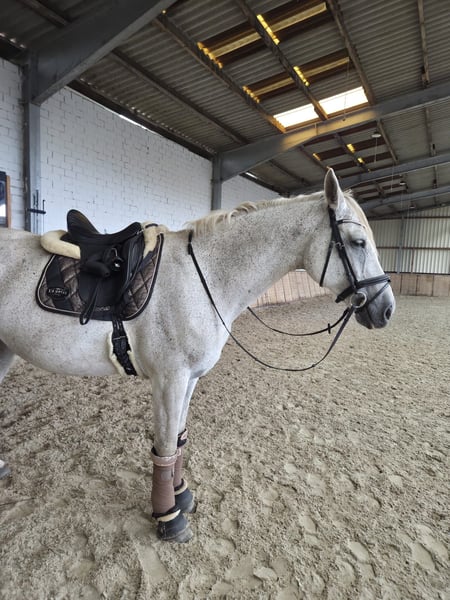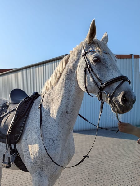 Schweren Herzens verkaufe ich meine 15 jährige Oldenburger Schimmelstute „Celina“ von Cellestial x Curacao. Celina wird aktuell von einem 13 jährigen Mädchen geritten (ist dieses Jahr bereits E-Dressur und E-Springen gestartet und platziert und hat auch ihr Reitabzeichen mit ihr absolviert). Sie ist nicht guckig oder schreckhaft. In jüngeren Jahren ist Celina bereits S Springen gelaufen und M** gesiegt. Celina ist mit tollen Bewegungen ausgestattet und hat ein enormes Sprungvermögen, daher könnte ich sie mir aufgrund ihrer tollen Abstammung auch sehr gut als Zuchtstute vorstellen. Sie hatte bereits ein Fohlen. Celina ist ca. 1,69m groß, schmiedefromm, verladefromm und herdenverträglich (eher rangniedrig). Sie geht gerne in der Gruppe ins Gelände. Alleine ausreiten geht nur mit etwas Durchsetzungsvermögen, da sie ein wenig klebt. Sie ist kerngesund und war bei mir nie krank. Ich habe selbst 2021 eine Aku mit Röntgenbildern machen lassen - ohne Befund. Ich wünsche mir für Celina ein tolles Zuhause, in dem sie täglich Auslauf bekommt. Sie soll kein Sportgerät sein, was noch M oder S Springen laufen muss. Ich könnte sie mir gut als Freizeitpferd im E und A Bereich sowohl in Springen als auch Dressur vorstellen. Allerdings ist sie mit viel Energie ausgestattet und möchte gern gearbeitet werden. Also nicht für Anfänger geeignet, auch wenn sie brav ist. Hat viel Go und kann stark werden, aber immer lieb dabei. Bei Interesse gerne unter folgender Nummer melden. 017683075565
