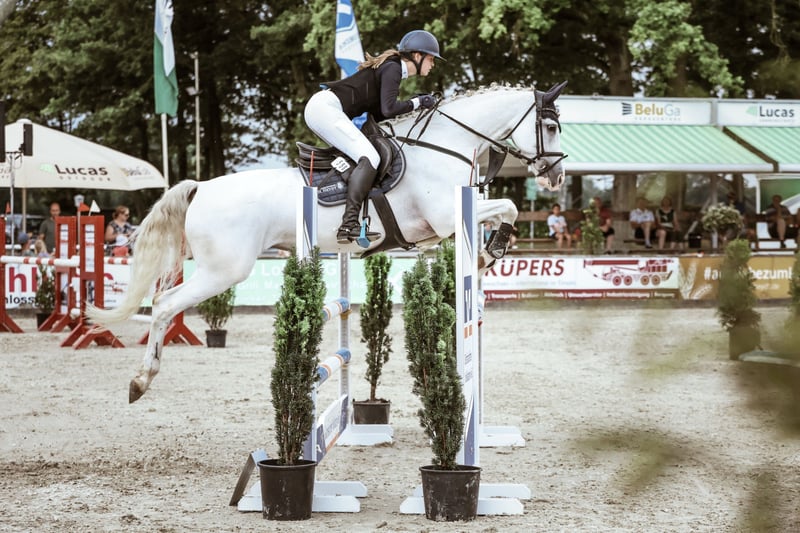 For sale is my ambitious Oldenburg mare Curly Sue, 168 cm tall, born in 2007. She has been competed up to S-level show jumping and subsequently took me to L-level in show jumping. Together, we have won numerous competitions, whether in style or timed events, often with dream scores of 9.0. Curly is characterized by her enormous ambition and willingness to perform. She always wants to do everything right and shows full commitment in the course. Particularly versatile in her jumping, she allows for quick and flexible distances. She requires a rider with a solid foundation of knowledge and experience handling horses that have "go." However, with the necessary rideability and calmness, she can be quickly and reliably controlled. Serious inquiries only, please. A trial ride is possible, but for a fee of €25 to avoid riding tourism. With Curly Sue, you get a powerful, motivated mare that reliably supports her rider and brings joy to show jumping.