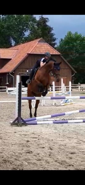 Gina ist eine Oldenburger Stute, geboren 2008. Sie war früher im Sport unterwegs und ist bis M-Springen gegangen. In der Zucht hatte sie bisher vier Fohlen, davon drei Prämienfohlen und ein Elitefohlen. Sie hat bei allen bisherigen Besamungen jeweils direkt beim ersten Versuch aufgenommen. Ihr letztes Fohlen hatte sie 2025, aktuell ist sie nicht tragend. Laut Tierärztin wäre eine erneute Besamung in diesem Jahr möglich. Gina hat einen kleinen Befund im Rücken. Sie wird daher vorrangig als Beistellerin abgegeben. Leichtes Reiten ist bei passendem, gut angepasstem Equipment und einem nicht zu schweren, erfahrenen Reiter grundsätzlich möglich. Sie ist keine Anfängerstute, da sie ihre Menschen gerne mal testet, dabei aber nicht steigt oder buckelt. Haltungstechnisch ist sie unkompliziert. Aktuell lebt sie in einer kleinen Stutenherde im Offenstall, kennt aber auch die Box und steht dort problemlos. Im Sommer ist sie 24/7 draußen. Sie ist sozialverträglich und kommt gut mit anderen Pferden zurecht. Die Abgabe erfolgt aus Aufgabe der Zucht bzw. des Hobbys und ist kein Notverkauf. Für Gina wird ein dauerhaftes, pferdegerechtes Zuhause gesucht, in dem sie in Ruhe alt werden darf.