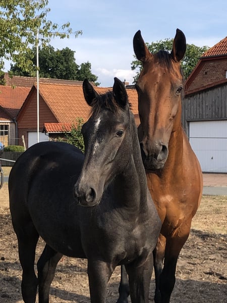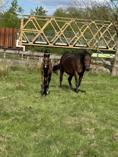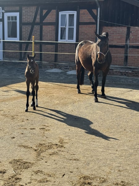 Gina is an Oldenburg mare, born in 2008. She previously competed in sport and has competed up to M-level show jumping. In breeding, she has produced four foals so far, including three premium foals and one elite foal. She has always accepted insemination on the first attempt. Her last foal was born in 2025, and she is currently not in foal. According to her veterinarian, re-breeding is possible this year. Gina has a minor issue in her back. Therefore, she is primarily offered as a companion horse. Light riding is generally possible with appropriate, well-fitted tack and a rider who is not too heavy and experienced. She is not suitable for beginners, as she tends to test her handlers now and then, but she does not buck or rear. Her care is straightforward. She currently lives in a small herd of mares in an open stable and is also familiar with a box stall, which she handles without issues. In summer, she is turned out 24/7. She is social and gets along well with other horses. The sale is due to a change in breeding plans and is not an emergency sale. Gina is looking for a permanent, horse-friendly home where she can enjoy her retirement peacefully.