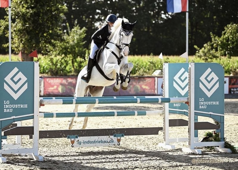 Aufgrund von Zeitmangel durchs Studium steht meine ehrgeizige Oldenburger Schimmelstute Curly Sue 168 (Calido I x Lavarino), geboren 2007, mit einem Stockmaß von ca. 1,64m zum Verkauf. Sie wurde bis S-Springen vorgestellt, bekam anschließend zwei Fohlen und hat mich danach selbst in den Springsport bis L gebracht. Gemeinsam konnten wir zahlreiche Springen gewinnen, egal ob Stil oder Zeit & Stil, teilweise mit Traumnoten von 9,0. Curly zeichnet sich durch enormen Ehrgeiz und Leistungsbereitschaft aus. Sie möchte immer alles richtig machen und zeigt im Parcours vollen Einsatz. Besonders variabel in den Galoppsprüngen, ermöglicht sie schnelle und flexible Distanzen. Sie benötigt einen Reiter mit sicherem Grundwissen und Erfahrung im Umgang mit Pferden, die „Go“ haben. Mit der nötigen Rittigkeit und Ruhe lässt sie sich jedoch schnell und zuverlässig kontrollieren. Ideal wäre eine Reiterin, die Spaß am Springen hat und Curly Sue liebevoll und sicher im Parcours arbeiten möchte oder eine erfahrene Reiterin für den Freizeitbereich. Bitte nur ernsthafte Interessenten. Proberitt ist möglich, jedoch gegen eine Gebühr von 25€, um Reittourismus zu vermeiden. Mit Curly Sue bekommt man eine leistungsstarke, motivierte Stute, die ihren Reiter zuverlässig unterstützt und Freude am Springen vermittelt.
