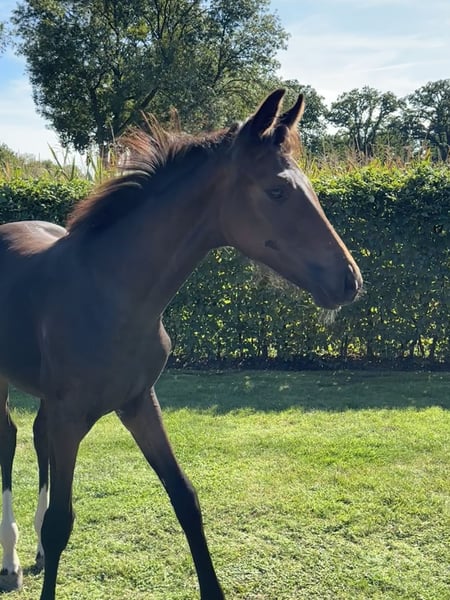 Stunning Filly by Danciero × Fürst Jazz/Blue Hors Romanov for Sale! Born on May 12, 2025, this charming dark bay filly with two white socks has already captured attention. She impresses with excellent basic gaits, an elegant presence, and a friendly, curious nature—an aspiring dressage horse with great potential for the future. ✨ Well-built – correct conformation – eager to perform ✨ Pedigree: Danciero × Fürst Jazz/Blue Hors Romanov ✨ Raised in a herd, in a natural and loving environment 📹 Videos available upon request! 👉 This special foal is now looking for a new home and caring hands to nurture her talents. #Danciero #FurstJazz #DressageFoal #Filly #DressageHorse #Foal2025 #DressageProspect #Breeding #FutureStar #YoungChampion #FoalLover #FoalForSale