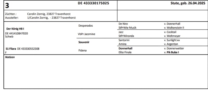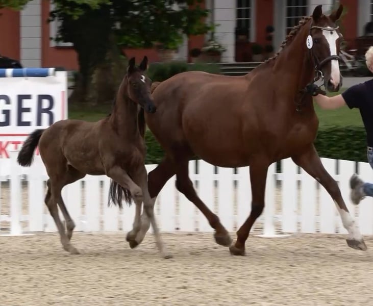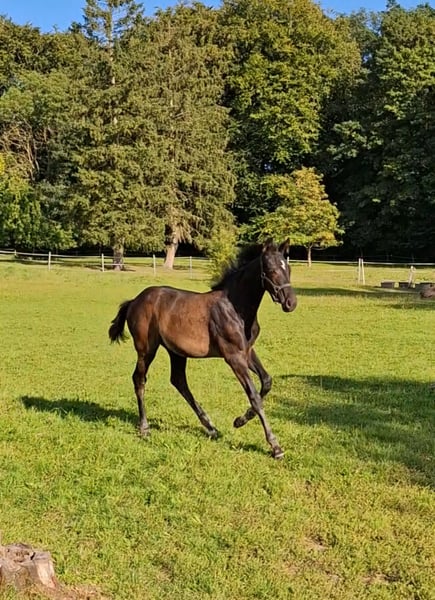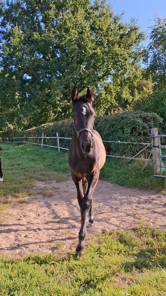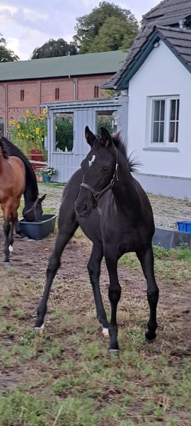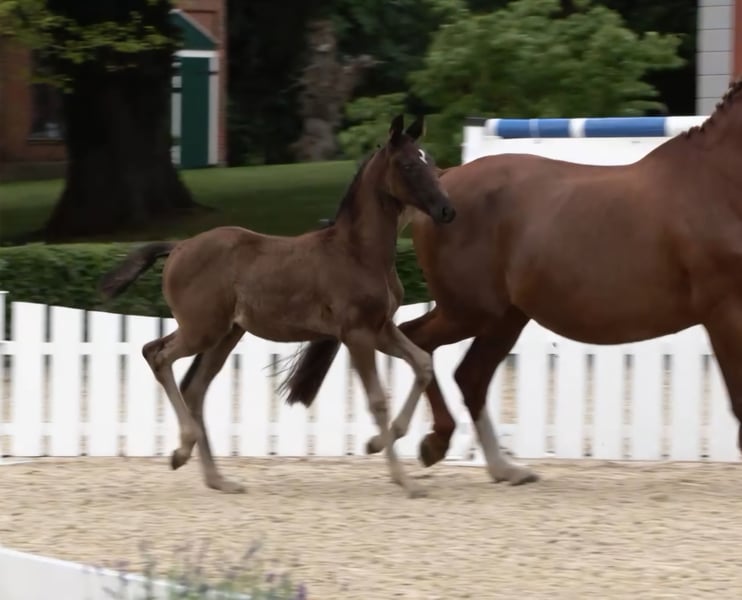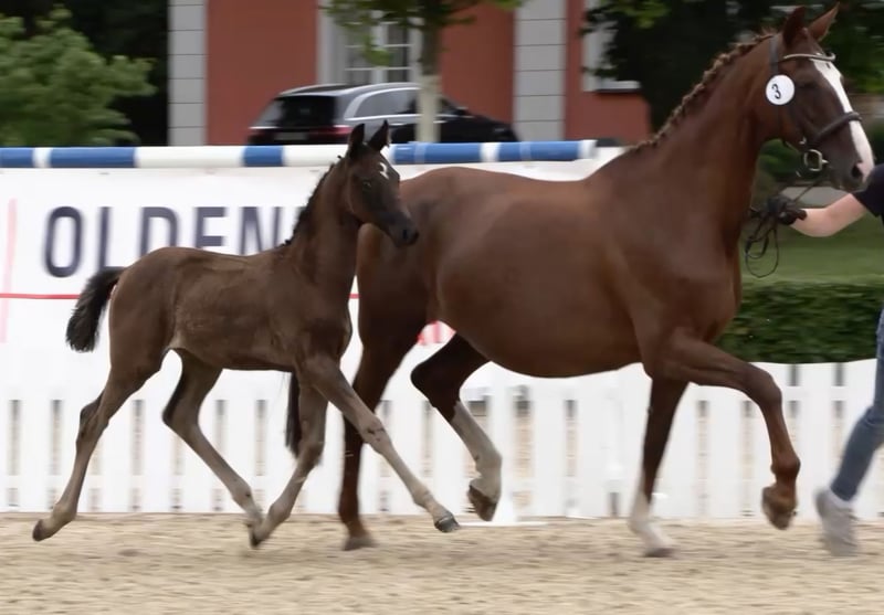 Unser erstes wunderschönes Fohlenmädchen, ist vom Tag 1 an sehr selbstbewusst und mutig. Schon beim ersten, wackeligen Gang nach draußen, wurde die Mutter direkt überholt. Charakterlich würden wir sie als fein, elegant und willenstark beschreiben. Sie ist menschenbezogen und liebt Kuscheleinheiten. Sie wohnt seit dem Absetzen mit 3 weiteren gleichaltrigen Fohlen in einer großen Laufbox und bekommt täglich Auslauf. Sie ist halfterführig, hat den Anhänger kennengelernt und der Schmied ist auch bekannt. Auf der Fohlenschau in Grebin wurde sie vorgestellt und mit der oldenburger Fohlenprämie ausgezeichnet. Bei ernsthafter Interesse, senden wir ihnen auch gern ein Video in Bewegung.