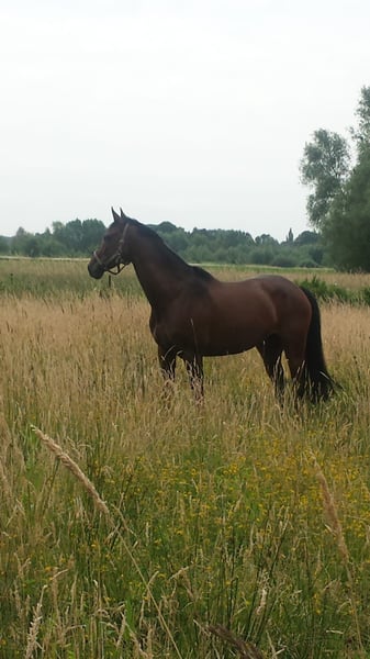 Unsere Acadia sucht schweren Herzens ein neues Zuhause. Auf Grund einer schweren Erkrankung unseres 6 Monate alten Sohnes können wir leider unserer Stute nicht mehr gerecht werden. Seit 6 Monaten bin ich rund um die Uhr im Krankenhaus. Acadia selbst kann auch 2 Wochen stehen und man kann direkt wieder losreiten. Derzeit ist selbst die Grundversorgung unserer Stute aber kaum mehr möglich. Daher wünschen wir uns ein tolles neues Zuhause für unsere Oldenburger Stute. Zuletzt wurde sie vor einem Jahr geritten und müsste wieder antrainiert werden. Allerdings sehe ich sie eher für therapeutisches Reiten oder Schritt Ausritte, denn die Arthrose kann natürlich auch mal zwicken. Sie ist ein sehr zuverlässiges, menschenzugewandtes Pferd, kennt Kinder und lässt sich durch nichts aus der Ruhe bringen. Ohne Sattel reiten, in den Urlaub fahren, gebisslos ins Gelände - sie kennt so gut wie alles und macht jeden Quatsch mit. In der Bodenarbeit/ Freiarbeit ist sie sehr fein und hat Spaß mit dem Menschen zusammen zu arbeiten. Auf Grund Ihrer Arthrose im Karpalgelenk ist springen, enge Wendungen und Ähnliches nicht mehr möglich. Gerne ein Platz als Beistellpferd oder für gemütliche Ausritte. Medikamente benötigt sie keine. Sie ist barhuf und hat für steiniges Gelände Hufschuhe. Ich habe sie vor 8 Jahren von den Vorbesitzern übernommen, diese haben sie selbst ausgebildet und auf Spring-, Dressur- und Vielseitigkeitsturnieren bis L/ M vorgestellt. Die Athrose bestand schon vor 8 Jahren und hat sich in dieser Zeit nicht verschlechtert. Mir ist wichtig das sie nicht beim Schlachter oder Händler landet, sondern in liebevollen Händen. Grundsätzlich möchte ich kein Geld, als Schutzbetrag, würde ich gerne ihr Zubehör (Decken, Trense etc) inklusive Sattel für 500€ verkaufen. Absolut Platz vor Preis. Ggfs. je nach Bedingungen könnte ich mir auch vorstellen sie zur Verfügung zu stellen. Einen Transport kann ich gerne organisieren und würde mindestens die Hälfte der Kosten tragen. (Je nach Entfernung und Kosten)