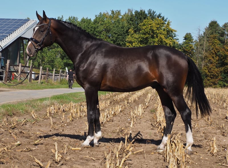 Zuchtjuwel mit bester Abstammung, mit überzeugenden überdurchschnittlichen Fohlen in den letzten Jahren (s. andere Anzeigen) und wieder tragend für August 2025 vom Siegerhengst Cafe au lait! Desweiteren hat sie in diesem Jahr über Embryotransfer bereits ein weiteres bildschönes bewegungsstarkes Fohlen, ebenfalls von Cafe au lait! Der Hengst ist reinerbig dunkel, es kann kein Fuchs fallen. Eine weitere Vollschwester dieser Anpaarung ist bereits verkauft, der Vollbruder geht dieses Jahr in den Deckeinsatz und kann ebenfalls vor Ort besichtigt werden. Vollbruder dieser Zuchtstute war im Dressursport bis S** erfolgreich! Selbst in Anpaarung mit Haflinger brachte sie unglaublich bewegungsstarke Nachkommen (s. Fotos). Vater "De Kooning" hat trotz recht begrenztem Deckeinsatz bereits Grand Prix Pferde wie Dalou Shan geliefert und führt als direkter Sohn des einzigartigen Donnerhall viel Holsteiner Blut auf der Mutterseite. Er stellte trotz geringer Nachkommenzahl bereits etliche gekörte Nachkommen, u.a in Neustadt Dosse einen Prämienhengst, in München- Riem den Dressursieger und einen weiteren Prämienhengst! "Cafe au lait", Körsieger, HLP-Sieger und BuCha Finalist, machte sich die letzten Jahre einen Namen durch seine äußerst erfolgreiche Nachzucht im Dressur- und Springsport der schweren Klasse gleichermaßen. So wurde Cafe's Casimir" (Cafe au lait x Calido x Grannus) gefeierte Preisspitze der Oldenburger Eliteauktion, ist bereits in jungen Jahren Seriensieger in S- Dressuren und international Intermediaire I siegreich. Stute Kasselmanns Cafe's Caletta (Cafe au lait x Calato) ist ebenfalls bereits S-Dressur platziert und international Grand Prix siegreich. Cafe's Mats (Cafe au lait x Don Frederico) wurde zweitteuerstes Dressurpferd der Oldenburger Summer Mixed Sales. Weitere Jungpferde aus springbetonten Mutterstuten sind bereits mehrfach in Dressurpferdeprüfungen A und L platziert und sind bemerkenswert bewegungsstark und kopfklar. Dass die Cafe au lait Nachkommen im Springsport bis zur schweren Klasse überzeugen steht außer Frage. Stationiert bei Paul Schockemöhle zeugte Cafe au lait schon etliche international erfolgreiche Springpferde, u.a. "Royce", siegreich im FEI CSI5* $500,000 Rolex Grand Prix Wellington. Der aus unserer Zucht stammende gekörte Cafe's Champus wurde unter Rene Tebbel Vizeweltmeister der jungen Pferde. Ebenfalls alle gekört und aus unserer Zucht: Cafe Junior (Cafe au lait x Silvio I), international S*-Springen platziert. Cafe's Columbo (Cafe au lait x Belstaff), erfolgreich in Frankreich. Cafe`s Star (Cafe au lait x Calido I): gekört und S-Springen erfolgreich im Iran. Cafe's Don Rubin (Cafe au lait x Donnerhall), siegreich in seinen ersten Springpferdeprüfungen. Cafe au lait selbst war unter Philipp Weishaupt Bundeschampionatsfinalist und ist bis S*** Springen erfolgreich gewesen, ist aber auch mit drei spektakulären GGA ausgestattet und dressurmäßig auf S Niveau ausgebildet worden. Unsere Fohlen bekommen täglich Mineralfutter und Fohlenstarter, regelmäßig EQUISTRO Haemolytan und Ipaligo Foal, Wurmkuren und Schmied sind natürlich ebenfalls selbstverständlich. Auch die Muttertiere bekommen die ganze Trächtigkeit hindurch spezielles Stutenfutter, täglich Saftfutter und Leinöl, sowie Heu ad libitum. So ist unsere Nachzucht stets im besten Gesundheitszustand! Es stehen auch immer wieder einige tragende Zuchtstuten zum Verkauf, ein Teil ist unter den weiteren Anzeigen zu finden. Bei passenden Pedigree Inzahlungnahme von Zuchtstuten möglich. Videoanfragen etc. ausschließlich via WhatsApp möglich.