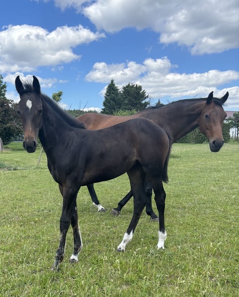 We are offering a promising young Oldenburg mare for sale. Breed: Oldenburg jumper Gender: Mare Year of birth: 2024 Color: Black bay If you are interested or require further information, please do not hesitate to contact us.