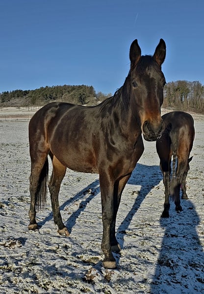 Mein Leben hat sich die letzten Wochen existenziell verändert & ich bin gezwungen, Entscheidungen zu treffen, die mein Herz in Scherben zerspringen lassen Ich werde mich von meiner geliebten Lotte trennen müssen & wünsche mir nichts mehr als das sie ein wunderschönes neues Zuhause bei einer erfahrenen, achtsamen Pferdefrau findet. Lotte wird im Mai 3 Jahre alt, ist aktuell ca 1,70m groß. Sie ist ihrem Alter entsprechend noch nicht geritten. Kennt aber Freiarbeit, vorsichtiges Longieren, Clickertraining, Schrecktraining usw. Sie geht natürlich regelmäßig zum Schmied & Verladen lässt sie sich auch. Sie hat Charakter & benötigt eine gute "Führung". Sie ist bei mir, seit sie 9 Monate alt ist. Bei ihr wurde MIM P4 & P8 positiv mischerbig getestet. Sie hat bis jetzt aber keine Symptome, welche ich wirklich darauf zurückführen würde. Auf Instagramm unter www.federleicht-reiten.de vorbei. Bei Interesse & Fragen gerne jederzeit melden. Der Preis ist für mich verhandelbar.