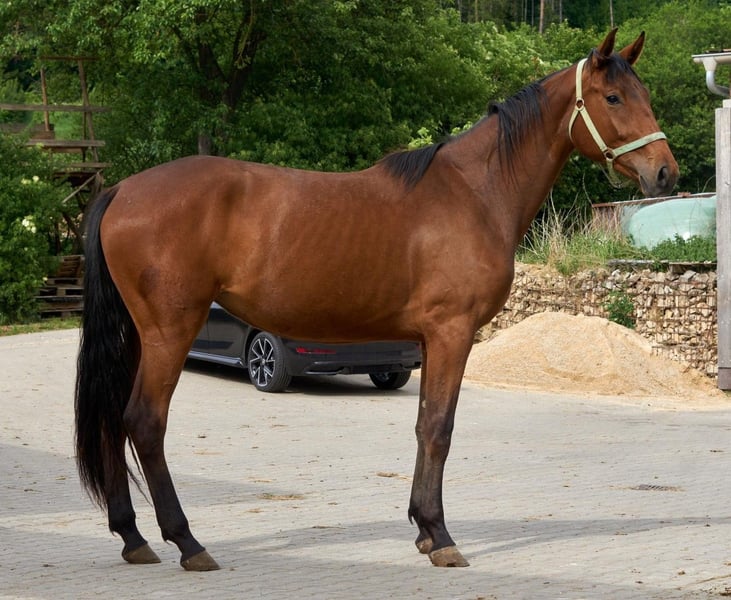 Amore Mio è una cavalla giovane, bella e alta, con un'ottima andatura. Assomiglia a molti dei suoi fratelli, caratterizzati dal fatto di essere cavalli socievoli e sensibili che portano i loro proprietari attraverso il percorso, il cross-country ecc. in modo ben educato. La loro madre Arriva ha avuto successo con un cavaliere amatoriale fino al livello elementare del salto ostacoli, mentre il fratello Granat ha brillato nelle gare di salto ostacoli di 160 cm sotto la guida di Maximillian Lill. Il padre di Amore Mio, Sacipont JV, ha avuto successo in competizioni di salto ostacoli di 145 cm. Amore Mio fa sperare in un grande futuro nello sport, nell'allevamento e nel tempo libero. A causa di un lutto, oltre a lei sono in vendita altri giovani cavalli promettenti. Se siete interessati, contattateci in qualsiasi momento per telefono o per e-mail. C'è la possibilità che Amore Mio rimanga con noi per un ulteriore allevamento.