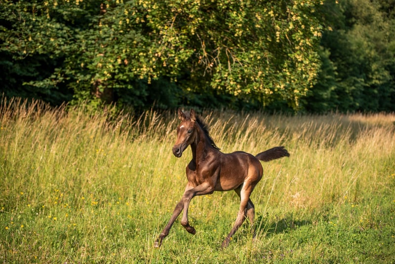 Die im Mai 2023 geborene Buckskinstute Susalinde (erwartetes Endmaß ca. 172 cm) vereint einen liebevollen und aufmerksamen Charakter und erstklassige Bewegungsgüte. Sie überzeugt durch ihr sanftes Wesen, ihre artgerechte Aufzucht in Züchterhand und eine Abstammung, die Dressurambitionierte mögen: Qandide x Amperé x Spielberg x Dream of Glory – Blutlinien, die für Rittigkeit und sportliche Perspektive stehen. Susalinde hat ein korrektes Fundament und ist großrahmig. Sie zeichnen eine sehr schwungvolle, raumgreifende Bewegung und ein sehr angenehmes Temperament aus. Die junge Stute kennt Spaziergänge allein wie auch als Handpferd im Gelände, ist bestens sozialisiert in der Herde und zeigte sich bislang stets gesund und robust. Die Halbschwester- und Mutter wurden von mir selbst geritten – beide Stuten zeich(net)en sich durch ihre außerordentliche Rittigkeit und Wohlwollen gegenüber dem Reiter aus. Susalinde trägt das Aufhellungsgen. Wird sie mit einem normalfarbigen Hengst angepaart, können aufgehellte Fohlen fallen. Susalinde sollte für den Eigenbedarf bleiben. Der Verkauf erfolgt nur aufgrund von Todesfall meines Partners und dem daraus resultierenden Umständen. Zeitnaher Verkauf erwünscht - aber ein artgerechtes Zuhause ist die oberste Prio!
