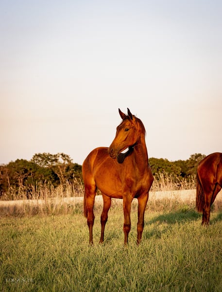 Jument buckskin alezane de 2023, fille de Qandide, cheval de dressage, jeune cheval en développement