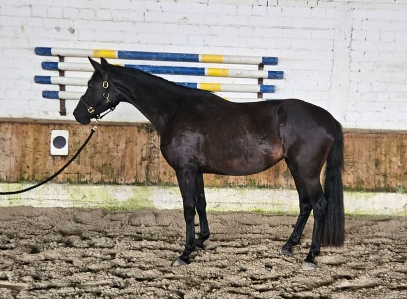 "Nakati" (Nakii) *2022 Black-Brown Mare sired by Nasdaq (Franklin-Vivaldi) x Fabriano Current height: 15.5 hh Small Tuv or similar size She has a short back and a small build, therefore she requires a 16-inch saddle – and a rider who suits her. She lives outdoors year-round in a mixed-age and mixed-gender herd. Vaccinated against: influenza, tetanus, and West Nile Virus. Regularly dewormed. As she is a late developer and still somewhat lanky, she needs time to grow into her frame. Like any horse, she also needs this time to build trust with her new person. She has started (autumn 2025) to walk and trot in the longe line with a saddle (soon with stirrups) and a bitless bridle (without reins or side reins), initially at walk and trot, and has stood quietly when I briefly leaned over her back (I have a video of this). She has also trotted over ground poles and very small jumps. She will need some more time before she is fully ready for work, but this allows her new owner to build a trusting relationship through stress-free groundwork training. I am only selling her unridden because: 1. I am too heavy for her. 2. I am too stiff to ride. 3. My seat doesn’t fit in the saddle. I will NOT sell her to anyone who wants to buy her without viewing her first. I want to ensure she finds a good home and that the buyer is a good match for her. Photos/Videos 2025 – she is currently muddy and very hairy!