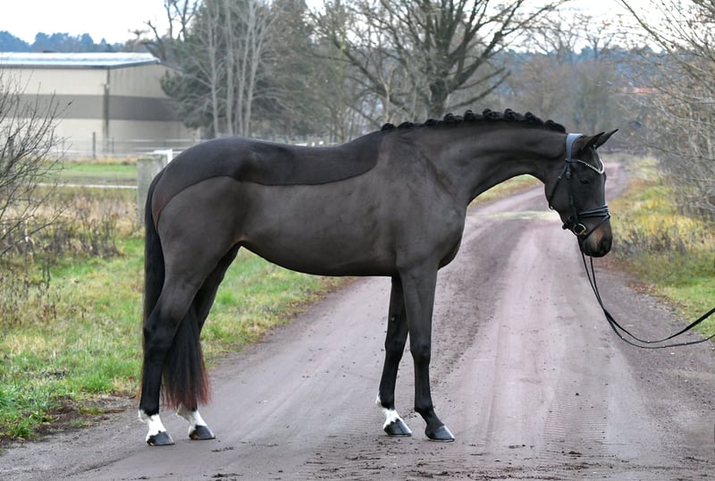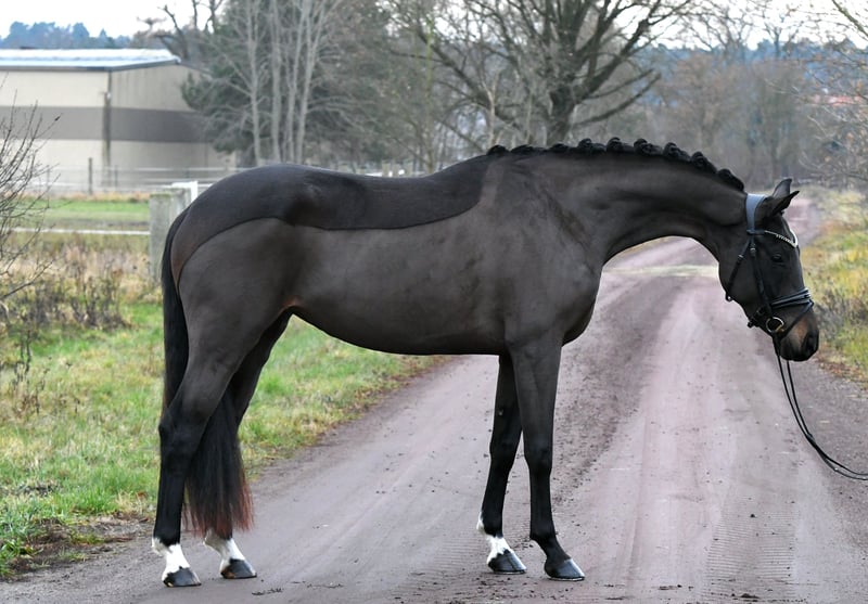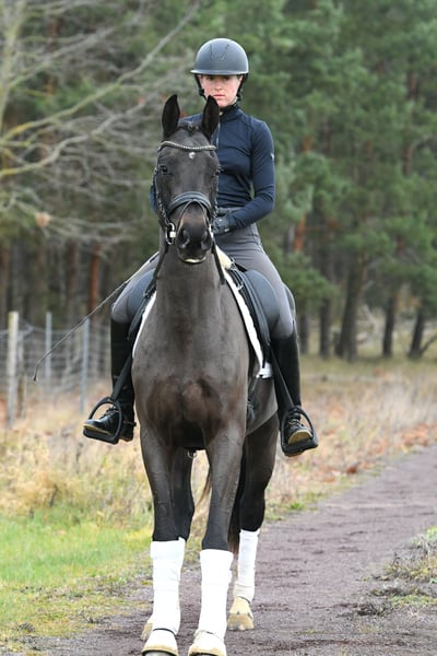 Co za słodka istotka! Ta prawie 4-letnia klacz od Vaderland została delikatnie rozpoczęta w treningu pod siodłem pod koniec lata i obecnie trzy razy w tygodniu jest spokojnie pracowana w hali i na terenie. Jest bardzo ambitna i pełna energii, ale jednocześnie łagodna i łatwa w obsłudze. Dzięki dobrym podstawowym chodom, w przyszłym roku może zacząć starty w konkursach dla młodych koni – idealny koń do nauki dla młodszego jeźdźca lub świetny koń do przejścia na inny sport! Posiada aktualny, dobry rentgen z tego roku. Zobacz i zakochaj się! Codziennie przyzwyczajona do paddocku i pastwiska!