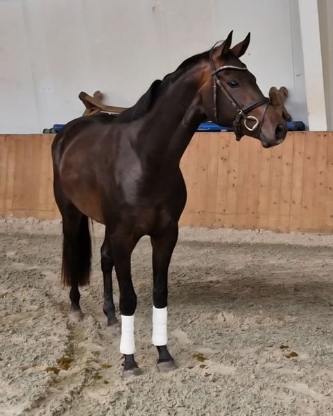 **Sales Advertisement: Dreamy Oldenburg Mare** For sale is a beautiful Oldenburg mare, born in 2022. She is sired by Finest×Zalabaster×De Niro. She presents herself in an elegant dark brown coat and has a height of 160 cm. This talented mare is particularly suited for dressage and already shows promising potential. Her calm and friendly nature makes her an ideal partner for ambitious riders who enjoy working with a young horse. She is well-socialized, easy to handle, and already knows the basic commands. With her positive attitude and willingness to learn, she will make quick progress and develop into a true champion. If you are interested or have any further questions, I look forward to your message!