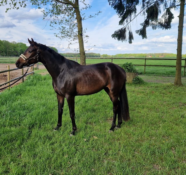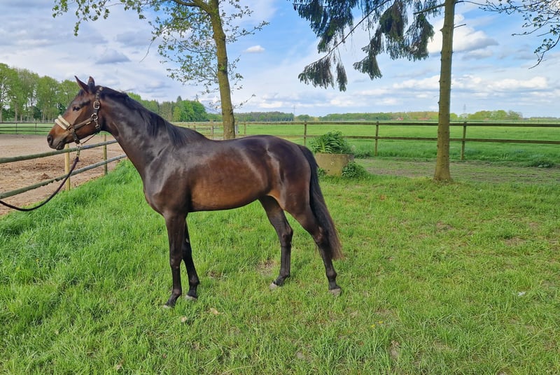 **Te koop: Prachtige Oldenburger merrie** Te koop is een prachtige Oldenburger merrie, geboren in 2022. Afstamming van Finest×Zalabaster×De Niro. Ze presenteert zich in een elegante donkerbruine vacht en heeft een schofthoogte van 160 cm. Deze getalenteerde merrie is bijzonder geschikt voor de dressuursport en toont al veelbelovende aanleg. Haar rustige en vriendelijke aard maakt haar een ideale partner voor ambitieuze ruiters die plezier hebben in het werken met een jong paard. Ze is goed gesocialiseerd, braaf in de omgang en kent al de basiscommando's. Met haar positieve instelling en leergierigheid zal ze snel vooruitgang boeken en zich ontwikkelen tot een echte kampioen. Bij interesse of verdere vragen ontvang ik graag uw bericht!