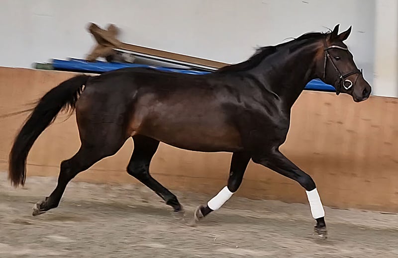 Annuncio di vendita: Splendida fattrice Oldenburger In vendita una bellissima fattrice Oldenburger, nata nel 2022. Discende da Finest×Zalabaster×De Niro. Si presenta con un mantello nero-marrone elegante e ha un’altezza al garrese di 162 cm. Questa talentuosa fattrice è particolarmente adatta al dressage e già mostra segnali promettenti. La sua natura calma e amichevole la rende un partner ideale per cavalieri ambiziosi che apprezzano lavorare con un giovane cavallo. È ben socializzata, educata al maneggio e non ha problemi con il ferratura o il trasporto in trailer. Conosce la sella e il peso del cavaliere. Sono disponibili radiografie recenti. Per interesse o ulteriori domande, non esitate a contattarmi!