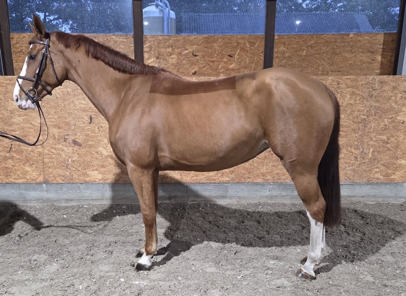 Carola, at just 4 years old, is already very confident and fearless. She is ready for show jumping and can be competed with in the near future. She is already comfortable riding alone in the open field with children. Thanks to her excellent rideability and gentle nature, this mare is also an attractive option for the ambitious recreational rider. Excellent X-ray images are available.
