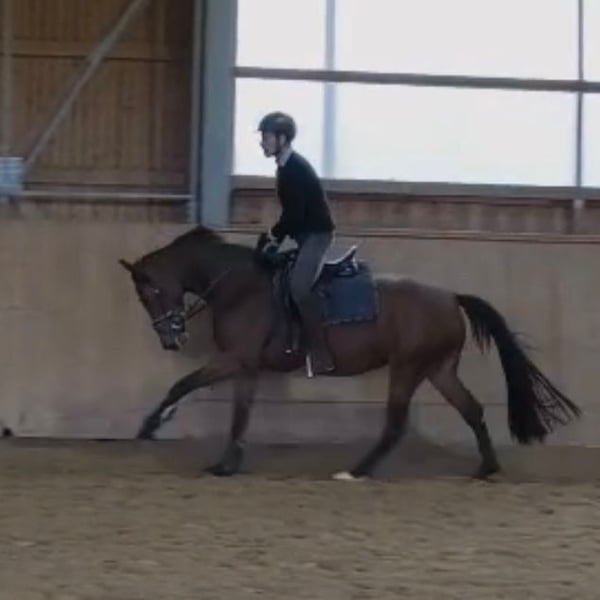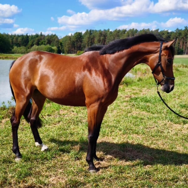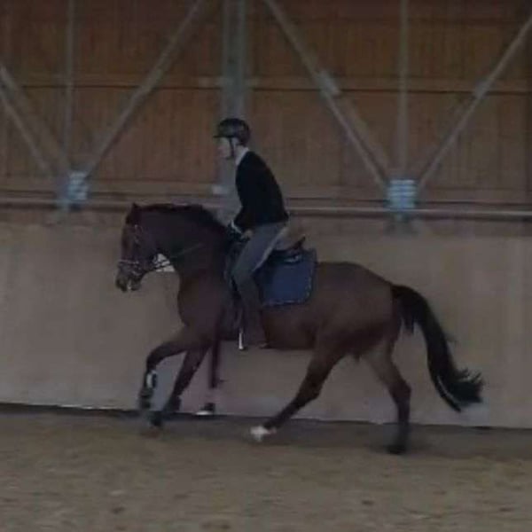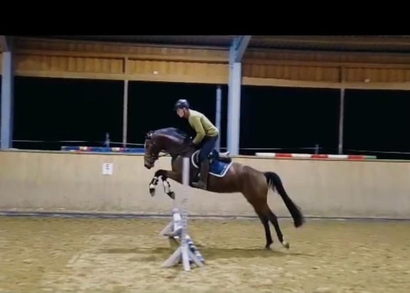 Zum Verkauf steht eine braune talentierte Jungstute von Chaplin x Valentino, welche jetzt bereit ist in ein neues Zuhause zu ziehen und weiter gefördert werden kann. Charakterlich ist die junge Stute, welche im März vier Jahre alt wird, einwandfrei. Sie wird in allen drei Grundgangarten geritten, wobei sie alles super mitmacht. Der Vater Chaplin ist selber ein hocherfolgreiches Springpferd unter Martin Fuchs mit zahlreichen Siegen auf 5 Sterne NIveau, darunter ein Weltcup Finalsieg, sowie drei Global Champion Tour Siege. Der Muttervater Valentino hat 50 Platzierungen und Siege bis zur schweren Klasse 3 Sterne S. Die Mutter Victoria`s Secret war selber in der Klasse M Springen erfolgreich, Vater Valentino / Pluspunkt /Pilot. Charakterlich ist die Stute Valentina einwandfrei, regelmäßig entrumt, geimpft und dem Hufschmied vorgestellt. Seid einer Woche wurden kleine Sprünge unter dem Sattel absolviert, wobei Valentina einen sehr guten Zug gegen das Hindernis zeigte. Sie bemüht sich sehr dem Reiter alles richtig zu machen. Jetzt ist sie bereit in fördernde Hände zu gehen. Ein Probereiten ist jederzeit möglich.