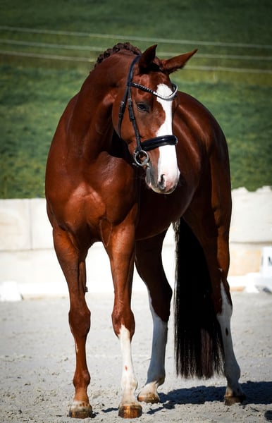 Ruby is an Oldenburg mare, approximately 16.1 hands, born in 2021. Sired by De Niro Gold out of a Donnerhall x Florencio dam line, with Rohdiamant and Rubinstein also in her pedigree. *Ruby* is a stunning mare with very expressive movements. She has been backed and is completely clear-minded. Ruby always aims to please and works willingly for her rider. As her lineage suggests, she possesses a high level of quality. She is well-behaved in handling, affectionate, and very cuddly. She is not spooky. The mare can be ridden in advance, but due to her age and training level, we will not allow trial rides with changing riders to avoid unnecessary stress. So far, everything has gone perfectly with her, and we want to spare her any negative experiences. She already has recent X-rays from July 2025 available. Pferdehandlung Dederichs – Your Partner for Horse Buying Contact & Availability: Please inquire exclusively by phone at 0173/9792139 Monday – Friday: 9:00 a.m. – 6:00 p.m. Saturday: 9:00 a.m. – 3:00 p.m. Sunday: Closed Follow us on Social Media! Experience our daily work with sale horses on Instagram, TikTok & Facebook at Pferdehandlung Dederichs Discount: Receive 5% – 10% off when taking your new dream horse immediately Trial Riding & Demonstrations: • Trial ride: €30 per horse (up to 2 riders), credited against purchase price • Public holidays: Trial ride €50 • Demonstration by our grooms: €25 per horse (including lunging, ground work, etc.) Pre-Purchase Examination & Transport: • Many of our horses already have a pre-purchase exam (AKU) • You are welcome to bring your own veterinarian • We can organize an examination for you • We are happy to assist with transport to your new home Other Sale Horses: We have additional horses available that are not yet listed online. If your dream horse isn’t among them, please don’t hesitate to contact us. Important Notes: • Estimated height measurements are approximate and not precisely measured • All descriptions are subjective assessments by the seller and do not constitute guaranteed properties Further information can be found at: www.Pferdehandlung-Dederichs.de