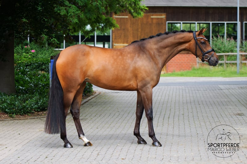 Oldenburg mare, 2021, approx. 1.67 m ⚜️ Jovian – San Rubin ⚜️ A mare with all possibilities You can't help it – our pulse goes up every time we see this mare! She has been gently started under saddle this year and is currently at riding horse level. A public presentation has not yet taken place. This mare combines high quality, impressive character, and exceptional rideability. Despite her young age, she already shows herself to be confident and reliable – and she is also beautiful! For us, she is the ideal picture of a modern sport mare – standing in stallion type, with much expression and presence. We are particularly excited about how wonderfully she develops from week to week – she brings joy every day and continuously surpasses herself. There is absolutely nothing negative to report. We are convinced: Here stands a great training horse with the best attitude. A true gem for ambitious dressage riders and breeders ✔️ Good current vet check including back and neck available ✔️ From first hand directly from the breeder Location: Lienen For more information, please contact: +49 173 3013499 or +49 174 2737377
