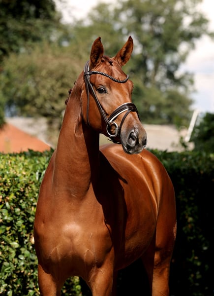 Tall daughter of Vivat Rex with an impressive build, harmonious side profile, and a pleasing overall appearance. Like all offspring from this dam mare, this young mare is a fundamentally sound, honest, and easy-to-educate young horse that brings daily joy. Raised in a solid environment without negative experiences. Not yet shown publicly. Directly bred by the breeder with a good inspection.