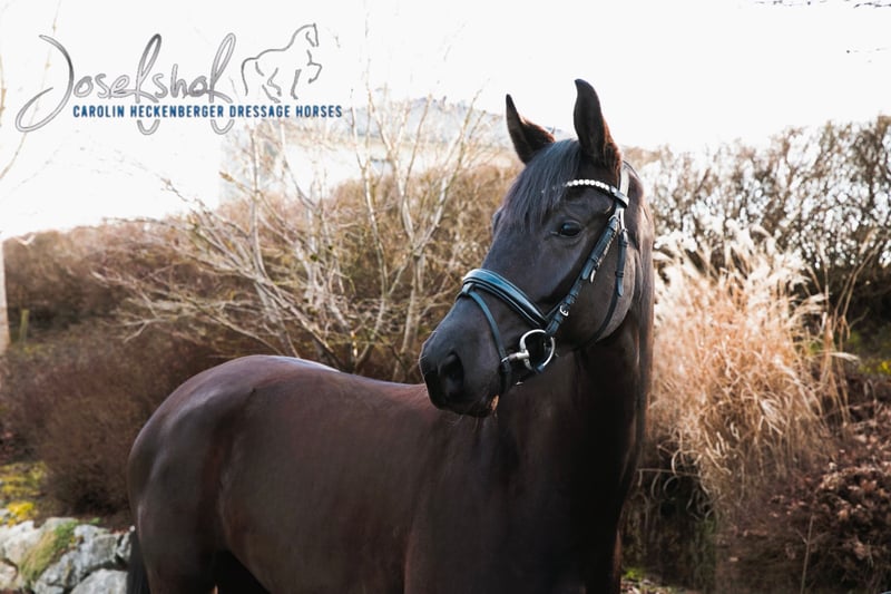 Zum Verkauf steht eine außergewöhnlich typvolle, lackschwarze Nachwuchsstute aus der bewährten Anpaarung Bonjour x San Amour – ein Pedigree, das für Rittigkeit, Modernität und höchste Qualität steht. Diese Stute verkörpert in beeindruckender Weise all das, was man sich von einem modernen Dressurpferd wünscht: allerhöchste Rittigkeit, ein stets taktsicheres, gesundes Go sowie ein außergewöhnlicher Sitzkomfort, der sie zu einem echten Reiterpferd macht. Sie überzeugt durch eine konstante, ehrliche Anlehnung, ist dabei jederzeit absolut klar im Kopf, nervenstark und bemerkenswert brav im täglichen Umgang wie auch unter dem Sattel. Was sie jedoch wirklich besonders macht, ist ihre natürliche Qualität: Bereits in jungem Alter zeigt sie sich mit hervorragend balancierten, elastischen und ausdrucksstarken Grundgangarten, die von Natur aus mit viel Mechanik, Schulterfreiheit und aktiver Hinterhand ausgestattet sind. Ihre Bewegungen wirken dabei stets leichtfüßig, bergauf angelegt und von besonderer Selbstverständlichkeit geprägt. Auch züchterisch lässt diese Stute keine Wünsche offen: Ihre Mutter war Preisspitze der Marbacher Elite-Auktion 2018 – ein eindrucksvoller Beleg für die außergewöhnliche Qualität dieser Linie. Hier vereinen sich modernste Genetik, eine ausdrucksstarke, dunkle Jacke und ein außergewöhnlich liebenswertes, kooperatives Wesen zu einem Gesamtpaket, das in dieser Form nur selten zu finden ist. Eine echte Offerte für anspruchsvolle Reiter und Investoren, die ein Pferd mit klarer Perspektive für den gehobenen Dressursport suchen – kombiniert mit höchster Rittigkeit und täglicher Freude im Sattel.
