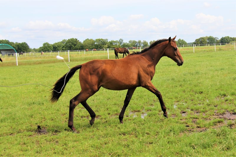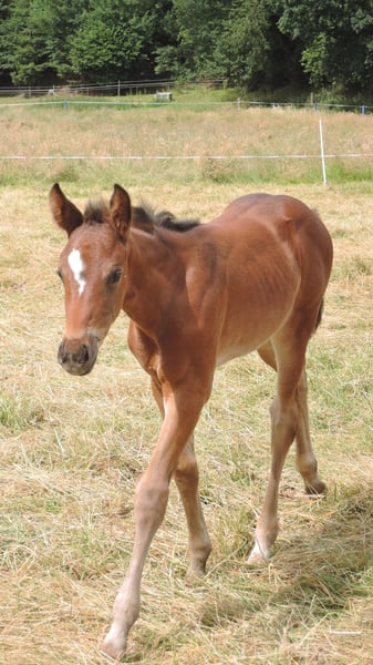 Golden Baila THD - Die Sinfonie von Bach, geb. 19.05.2022, edel, trotzdem rahmig mit Herz und Nerv bereit für den grossen Sport und für die Zucht ein Versprechen. Vereint die beiden Stämme von – Westf. 382. Danja und SACUNDA, Hannover Stutenstamm 1191424, Schridde 525 Vater Bach: http://www.pferdezucht-kroener.de/bach.html https://www.horsetelex.de/horses/pedigree/2173599/bach Mutter Golden Dream THD: http://thd.tophorsedressage.ch/?page_id=82 Edel, langbeinig, tolle Gesichtszeichnung und stets wach verzückt uns unsere Diva. Machen Sie sich ein eigenes Bild und lassen Sie sich überzeugen. Der hohe gewünschte Blutanteil macht sie für den Sport und die Zucht gleichermassen interessant. Das Pedigree mit Benicio v. Belissimo M, Diamond Hit von Donnerhall, Dante Weltino OLD, zweimaliger Olympiateilnehmer, Hill Hawk XX sprechen für sich und sichern gut ab.