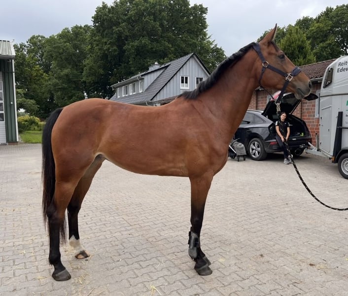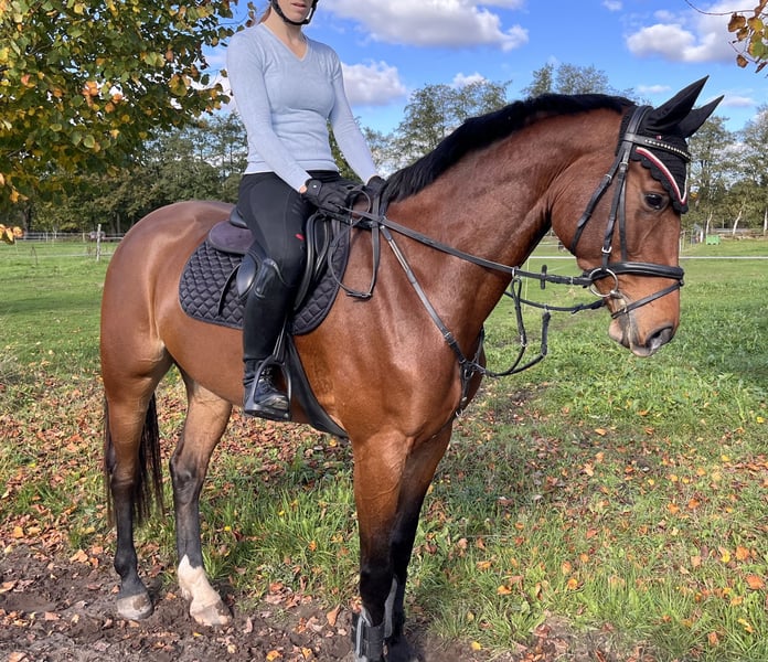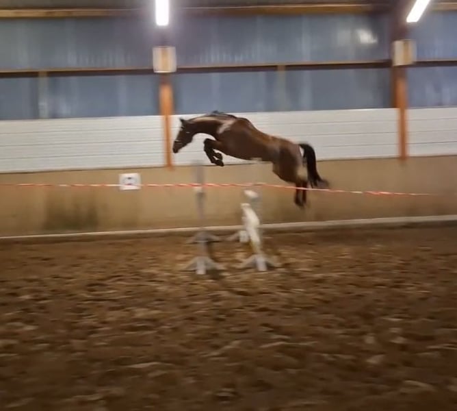 For sale is a very typy and high-quality 5-year-old show jumping mare with a lot of talent and a good character. Her sire, Diaron, impresses with rideability and athleticism, while on her dam’s side, she brings excellent caution and technique through Chaccoon Blue. The dam competes at the highest levels of sport. Debby has been ridden and is currently in solid basic training. She demonstrates very good manners, talent, and caution over jumps. She is careful and strives to avoid mistakes. Due to my maternity leave, I haven’t been able to further develop her recently, so she has only been shown once at a competition this year. Debby has good gaits and good rideability. For riders who wish to develop their horse independently, she provides a good foundation but is not suitable for complete beginners (she has a lot of go). In daily handling, she is friendly, approachable, and uncomplicated. She enjoys working, is mentally clear, and pleasant to ride. I can also see her excelling in eventing. With a bit more training over the winter, she will surely become a very talented show jumping horse for the next competition season. Debby is farrier- and loading-friendly, has no health issues, no bad habits such as rearing or similar, and comes with a very good health certificate including 18 recent X-ray images (including back) from 2023.