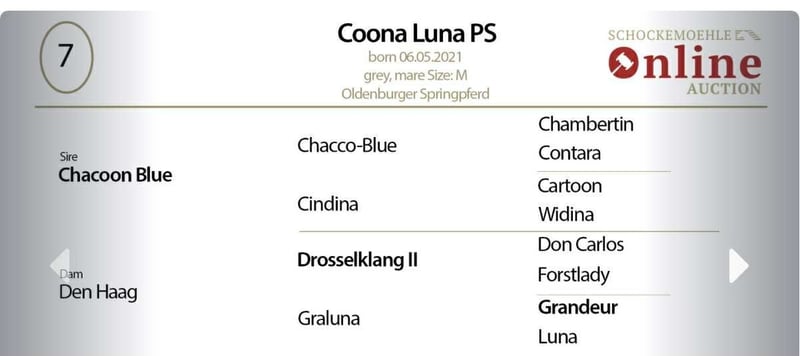 Splendida fattrice di razza Oldenburger, perfetta per il salto ostacoli! Nata nel 2021, grigia, con un'imponente altezza di 167 cm. Ideale per il salto, con un eccellente potenziale sportivo. Ben sviluppata, sana e piena di energia. Contattami per ulteriori informazioni!
