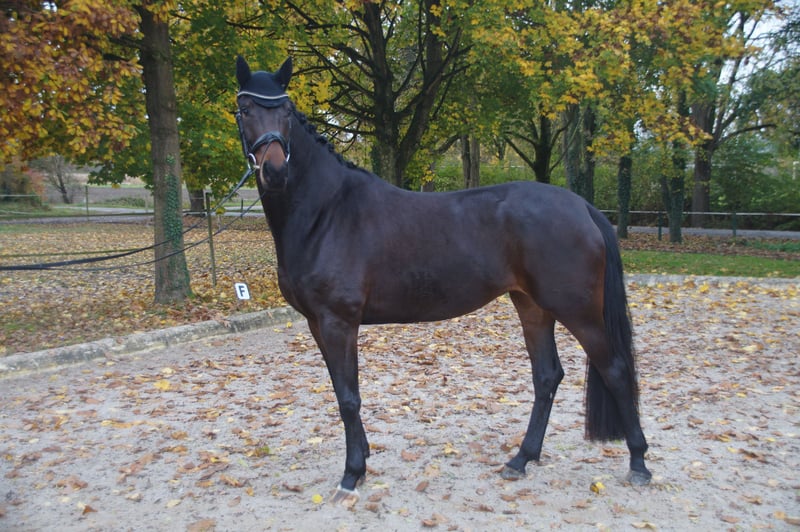 Se pone a la venta esta hermosa yegua de Total Hope, claramente con el carácter de su padre, Fondation. Su hermano por parte materna fue la mejor venta en la subasta de primavera del año pasado. La madre y la abuela son yeguas de élite. Ha sido montada con suavidad y lleva un año bajo la silla. Ha participado en varias pruebas de doma clásica, logrando buenos resultados o colocándose en posiciones destacadas. También completó una excelente prueba de rendimiento y recibió la prima principal en la Verband Oldenburger. Muy inteligente y dotada de tres excelentes aires básicos, en algunos momentos valorados con notas superiores a 8. Su predisposición para la recogida es claramente visible. Una yegua fantástica, que merece una formación adicional. También apta para el deporte amateur. Trinity sale a pastar todos los días. Está en perfecto estado de salud, nunca ha cojeado ni estado enferma. Se dispone de un informe de revisión veterinaria muy completo, incluyendo espalda y cuello. Para más preguntas, no dude en contactarme, preferiblemente por teléfono.