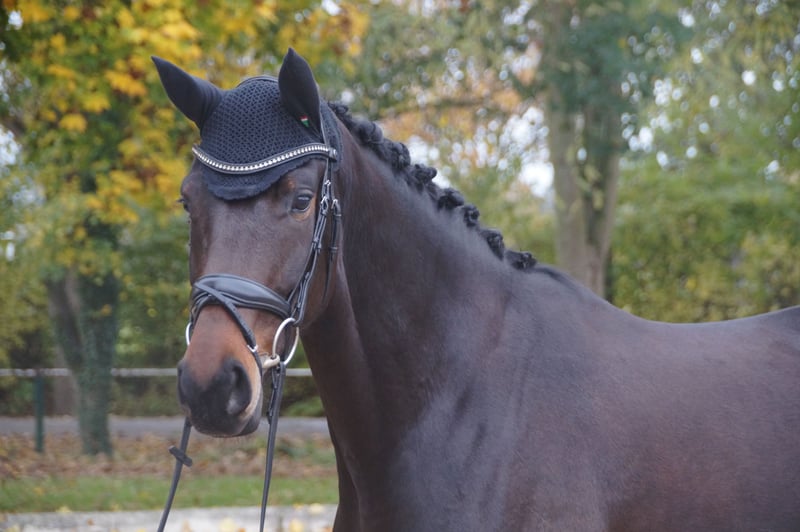 For sale is this beautiful mare by Total Hope, clearly reflecting the look of her sire, Fondation. Her maternal brother was the top-priced horse at last year's spring auction. Both her mother and grandmother are elite mares. She has been gently backed and has been under saddle for a year. She has successfully competed in several riding horse tests or achieved high placements. Additionally, she completed an excellent performance test and received the main premium in the Oldenburg Verband. Very intelligent and equipped with three excellent basic gaits. She is sometimes rated with scores above 8. Her aptitude for collection is clearly evident. A wonderful horse with great potential for further training. Suitable for amateur riders as well. Trinity is turned out to pasture daily. She is in excellent health and has never been lame or ill. A very good pre-purchase exam is available, including assessments of her back and neck. Please feel free to contact me with any questions – preferably by phone.