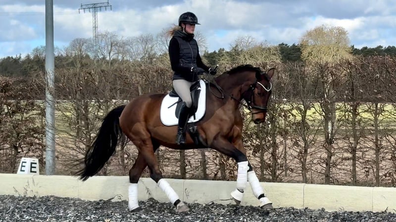 Zum Verkauf steht eine 5-jährige, typvolle Dressurstute mit hervorragender Abstammung von Fynch Hatton x Sir Donnerhall I. Firefly überzeugt durch ihren eleganten, großrahmigen Körperbau und ihre natürliche Ausstrahlung. Sie ist eine sehr feinfühlige und sensible Stute, die durch ihren lieben, dem Menschen zugewandten Charakter besticht. Im Umgang zeigt sie sich stets brav und angenehm. Unter dem Sattel präsentiert sie sich rittig und motiviert, benötigt jedoch einen einfühlsamen Reiter mit Erfahrung, der ihr die nötige Sicherheit und Zeit gibt. Sie ist kein Anfängerpferd, sondern sucht einen kompetenten Förderer, der sie ohne Druck weiter ausbildet. Gibt man ihr die nötige Ruhe und das richtige Maß an Unterstützung, entwickelt sie sich zu einem Pferd mit vielversprechendem Potenzial für den Dressursport. Eine tolle Partnerin für Reiter, die ein sensibles Nachwuchspferd mit Perspektive suchen.