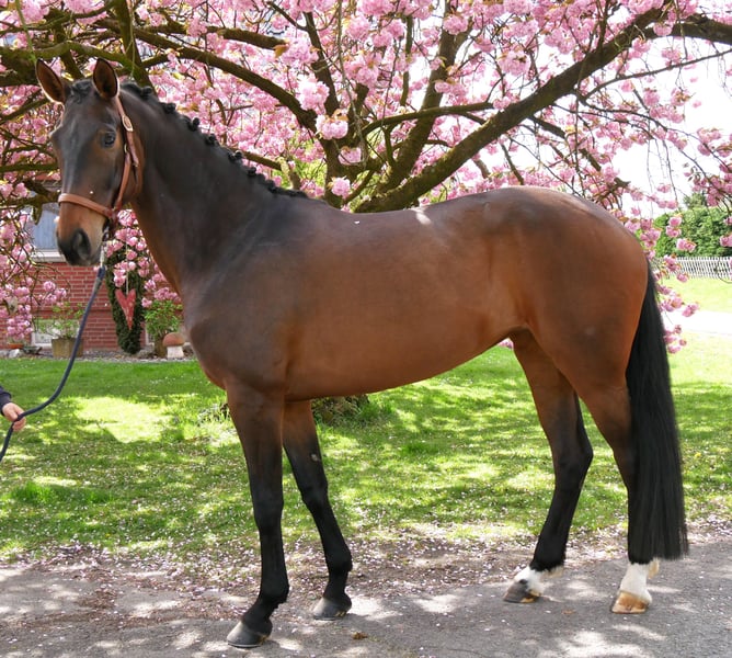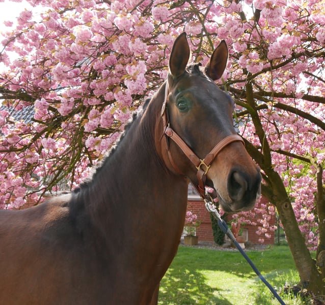 Name: California Dream Alter: geb. 10.05.2021 Geschlecht: Stute Stockmaß: ca. 171 cm Rasse: Oldenburger Abstammung: Cadeau Noir x Fürst Romancier x Spörcken Ausbildungsstand: angeritten Wunderschöne grossrahmige Stute mit bester Abstammung und guten GGA. Sie ist ganz brav im Umgang , menschenbezogen und verträglich mit anderen Pferden. Unter dem Sattel nur für fortgeschrittene Reiter geeignet. California Dream ist komplett geimpft und entwurmt, zur Zeit vorne beschlagen. Alles weitere unter der Nummer 0176 62495567