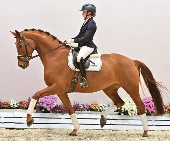 Adult dressage diva destined to make her way in the top levels of dressage sport. She descends from a distinguished lineage, including the U.S. champion Damon’s Fantasy/Kathy Priest, USA, as well as Grand Prix successful horses such as Fackeltanz OLD from the Max-Theurer dressage stable and Delaunay OLD/Patrik Kittel, SWE.
