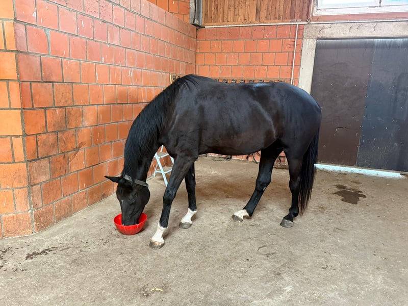 Ze is uitstekend geschikt voor de fokkerij en helaas, vanwege een blessure aan de m fibularis tertius met daaropvolgende peeskopafzakking op 6 maanden leeftijd, slechts beperkt geschikt voor de grote sport. Vanwege de genezen blessure, maar de blijvende zachte pees (zie foto), is de ruiter- en begeleidingstraining - indien rijden gewenst is buiten het recreatieve gebied - van groot belang bij deze merrie, die nog steeds haar prachtige gangen laat zien. Aangezien deze merrie zeer snel leert en wil leren, is het ook leuk om met haar grondwerk of vrijheidsdressuur te verdiepen. De merrie wil haar eigenaar altijd plezieren en is ook in moeilijke situaties, zoals op wedstrijdterreinen met veel paarden in de zaal, een koele kikker. Er waren geen problemen tijdens het inrijden en de opleiding en we zeggen allemaal dat ze zonder de peeskopafzakking een heel grote zou zijn geworden. Dit betekent dat ze de normale intensieve trainingseenheden kan doorlopen, maar na ongeveer 2-3 weken spierspanning vertoont. In het recreatieve gebied zou dit slechts beperkt een probleem moeten zijn. Ze is zeer braaf en mensgericht in de omgang, goed te hanteren, ook al is ze ranghoog in kuddes, goed opgeleid en zo goed mogelijk gefokt en heeft al enige ervaring onder het zadel opgedaan. Over de fokkerij: De veulens beloven absoluut een schot in de roos te worden, vooral omdat de bevindingen voor 100% aan de hierboven beschreven blessure kunnen worden toegeschreven. Bijbehorende veulenfoto's met de absoluut correcte, eerder te steile (!) achterbenen zijn natuurlijk aanwezig. De dierenarts die ons destijds heeft begeleid, inclusief fysiotherapie en revalidatie, kan gerust worden gecontacteerd. We stellen graag contact voor de aankoop. We hebben een veulenfoto bijgevoegd, we denken dat dit gewoon alles laat zien. Afstamming en andere details: https://www.rimondo.com/de/pedigree/1692684/somebody-to-love-hk De prijs is zo vastgesteld omdat we voor 100% de "verwerking" willen uitsluiten. Hier geldt 100% plaats voor prijs! We zoeken goede handen voor dit zeer lieve, mensgerichte paard! Bij interesse of verdere vragen horen we graag van u.