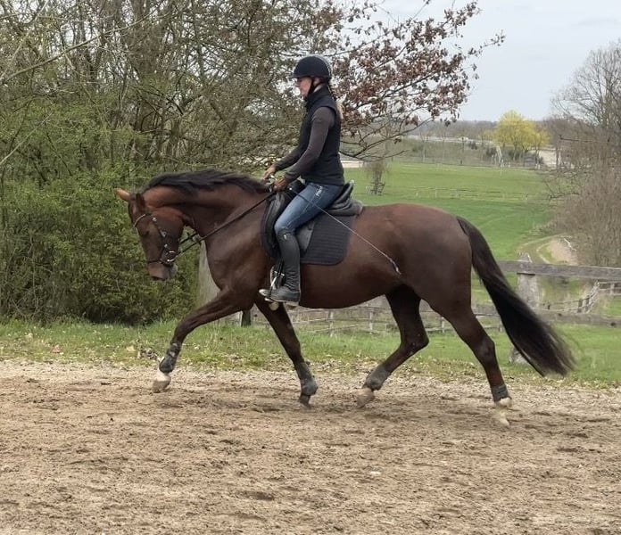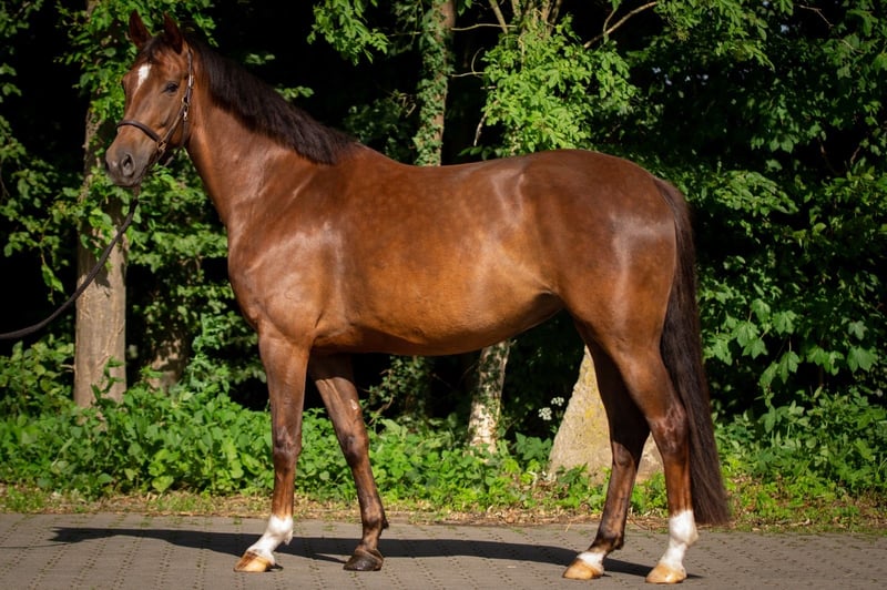 Ich suche für meine Mini ein neues, liebevolles Zuhause. Mini ist eine 6-jährige Stute (*24.01.2020) von Feinrich x Di Maggio x Don Gregory, ca. 1,62 m groß. Sie verfügt über drei gute GGA mit schönem Schwung durch den Körper und überzeugt besonders durch ihre Rittigkeit. Mini ist sehr fein an den Hilfen und möchte ihrem Reiter stets gefallen. Es macht einfach unglaublich viel Freude, sie zu reiten. Auch beim Freispringen zeigt sie sich durchaus talentiert. Aufgrund von Zeitmangel wurde Mini in den letzten Jahren nur phasenweise gearbeitet. Daher ist sie aktuell kein Anfängerpferd, sondern sucht einen Reiter mit Gefühl, Erfahrung und Freude an weiterer Ausbildung. Ende 2023 hatte Mini eine kleinere Gewebeveränderung im Fesselträgerschenkel hinten links, verursacht durch eine Verletzung im Stall. Sie war dabei zu keinem Zeitpunkt lahm. Nach entsprechender Pause ist die Verletzung vollständig ausgeheilt. Ich wünsche mir für Mini jemanden, der sie vielseitig beschäftigt. Sie hat große Freude an Bodenarbeit, geht gerne ins Gelände und bringt durch ihre interessante Abstammung auch Voraussetzungen für die private Zucht mit. Sie ist insgesamt ein feines, sensibles Pferd, das eine einfühlsame, aber konsequente Bezugsperson braucht. Mini kennt keine Boxenhaltung. Sie ist direkt nach der Aufzucht zu uns in den Offenstall gezogen und wurde entsprechend gehalten. Daher bitte nur anfragen, wenn Offenstallhaltung oder alternativ eine Box mit ganztägigem (!) Auslauf möglich ist. Ein aktueller TÜV liegt nicht vor. Mini ist mein erstes selbstgezogenes Pferd und unter besten Bedingungen groß geworden. Umso wichtiger ist es mir, für sie ein wirklich passendes Zuhause zu finden. Sie wird ausschließlich aufgrund der Aufgabe des Reitsports abgegeben und nur mit vertraglich geregeltem Vorkaufsrecht. Bei Interesse kann auch Equipment wie Sattel, Trense, Decken etc. mit übernommen werden. Videos gerne auf Anfrage.
