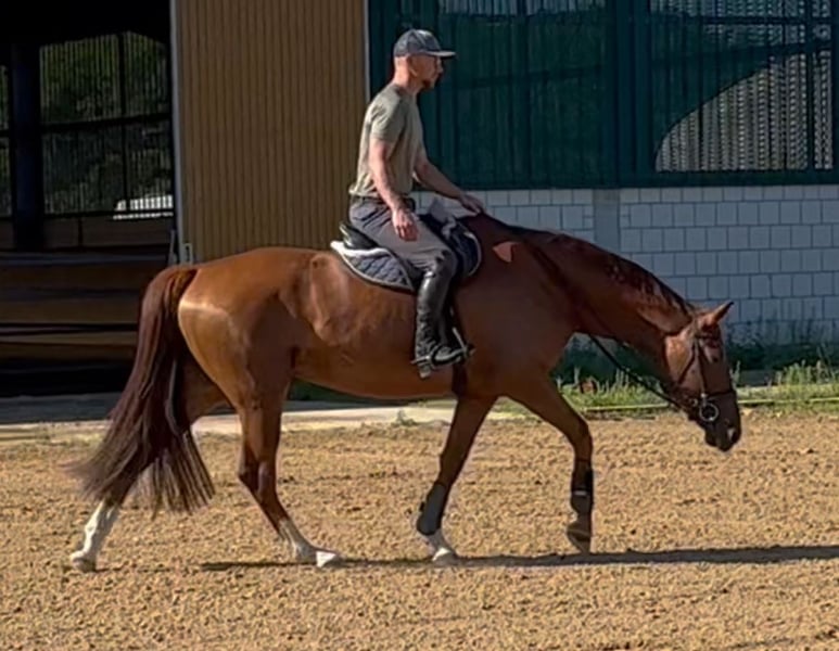 Franzi was born and raised with us, started under saddle, and is now worked 5 times a week. She is familiar with long lining, groundwork, dressage work, some jumping training, and of course, going out on trails. The mare shows herself to be fearless and has a very good willingness to perform. Equipped with an excellent hindquarters, she always swings through her body, providing a very good feeling of balance for the rider. We can very well imagine her in dressage as well as in the higher leisure sector. She is simply a wonderful horse looking for a new carrot giver. The X-ray images are available without findings and can be sent at any time.