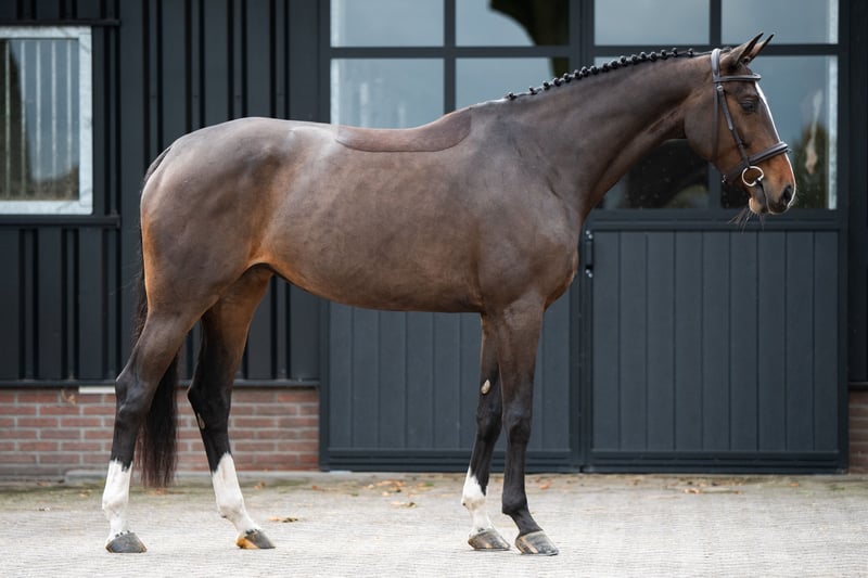 Tiffany is an exceptional 6-year-old mare by Talan x Chacco Blue, showing impressive talent in both showjumping and eventing. She offers modern sport horse quality combined with outstanding rideability, cleverness, and a remarkable willingness to work. Her canter is one of her greatest highlights: ground-covering, rhythmic, well-balanced, and effortlessly adjustable. She uses this canter with great intelligence in the ring, always thinking along, staying focused, and showing natural overview. In everyday work, Tiffany demonstrates excellent work ethic and learns incredibly fast. She is naturally forward yet very rideable, and truly looks forward to being worked each day. She seeks a real partnership with her rider and is perfectly suited for someone who aims to shine internationally. In jumping training, Tiffany shows carefulness, plenty of scope, and a technique that improves week after week. She is absolutely the type of horse you can ride against the clock. She does not spook, never questions a fence, and is the kind of mare that will help you out when the distance isn’t perfect. Already placed up to 1.20m, she is one of those horses that makes every round feel easy and wants to jump clear every time. Tiffany also shines in eventing, displaying forward thinking, excellent technique, cleverness, and natural bravery. From her very first cross-country trainings, she showed outstanding interest, courage, and immediately gained successful competition experience. Her character is truly special: she is funny, expressive, soft-hearted, and incredibly kind. In the stable she is quiet, polite, and very easy to handle — a horse that brings joy to everyone around her. Tiffany has back and leg X-rays without any remarks and has no other health issues. She is incredibly unique to us, which is why she will only be sold into very good and suitable hands. If you are interested, please feel free to contact us at +49 176 80661258